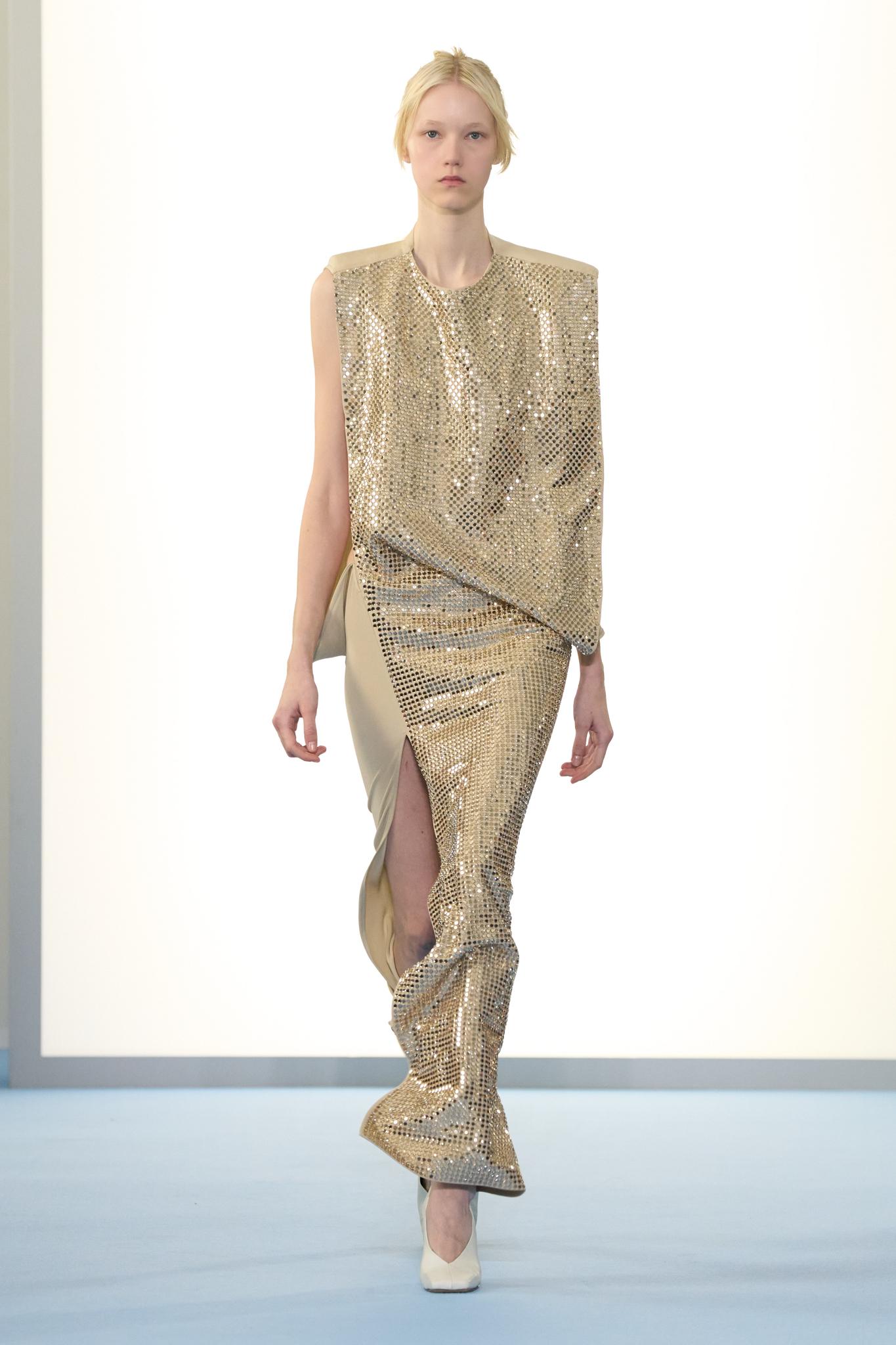 現職に就任以来、デムナは「グッチ」というブランドを人間のように捉えて、最初の「ラ・ファミリア」コレクションではさまざまなパーソナリティの男性・女性像を提案した。今回のコレクションは、そうした人間性の探究をルネサンスにまで遡り、写実的に人間の体を描く。すると繋がったのは、トム・フォード時代のセクシネス。そしてセクシネスを引き出そうと、デムナはモデルにもパーソナリティに応じてさまざまなウォーキングを指示したように思える。「グッチ」らしいモチーフを存分に盛り込んだ「ラ・ファミリア」に始まった人間性を求める旅路が、色もモチーフもシルエットさえほとんど廃した今回のコレクションに辿り着くとは、デムナの解釈力の賜物と言えるだろう。