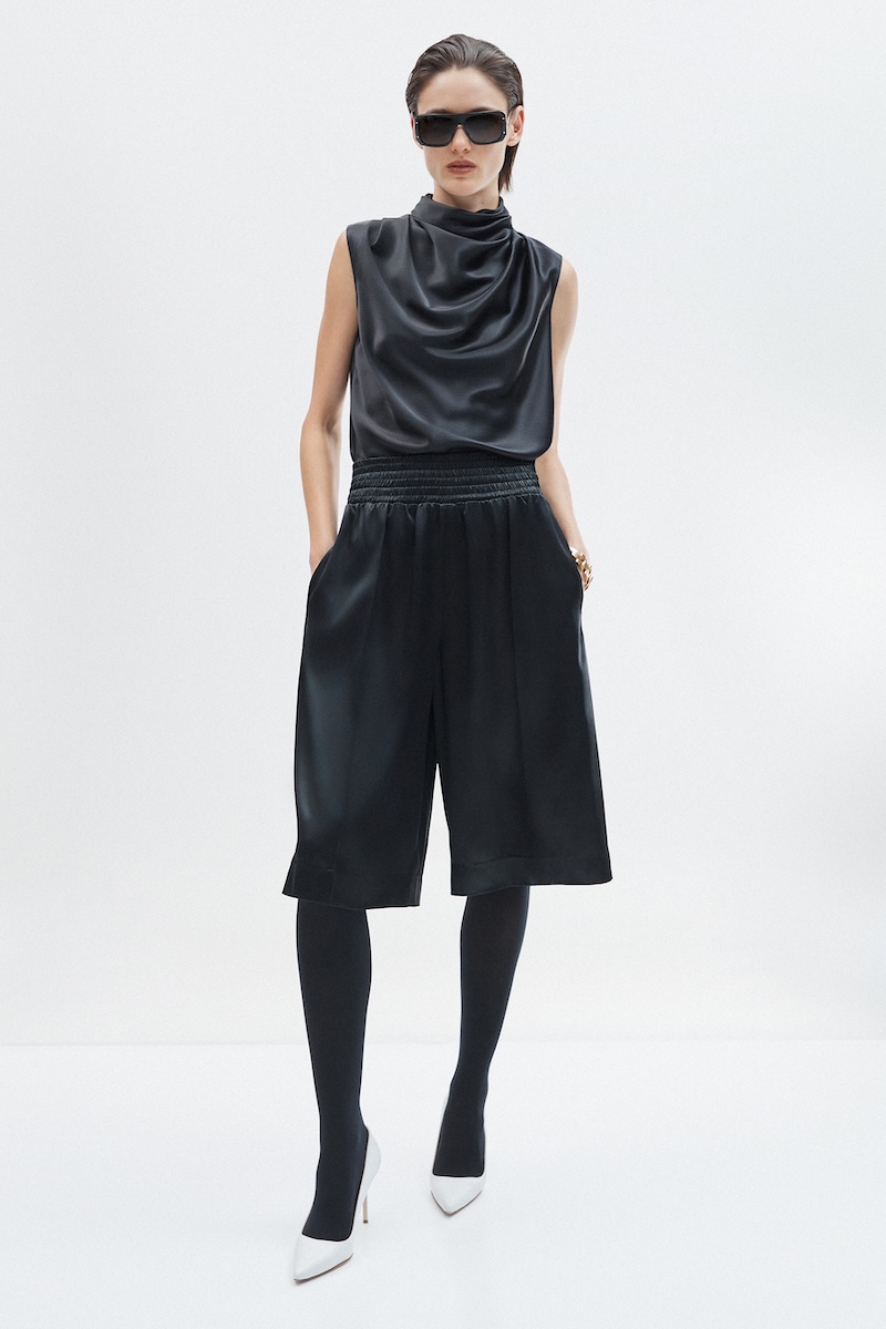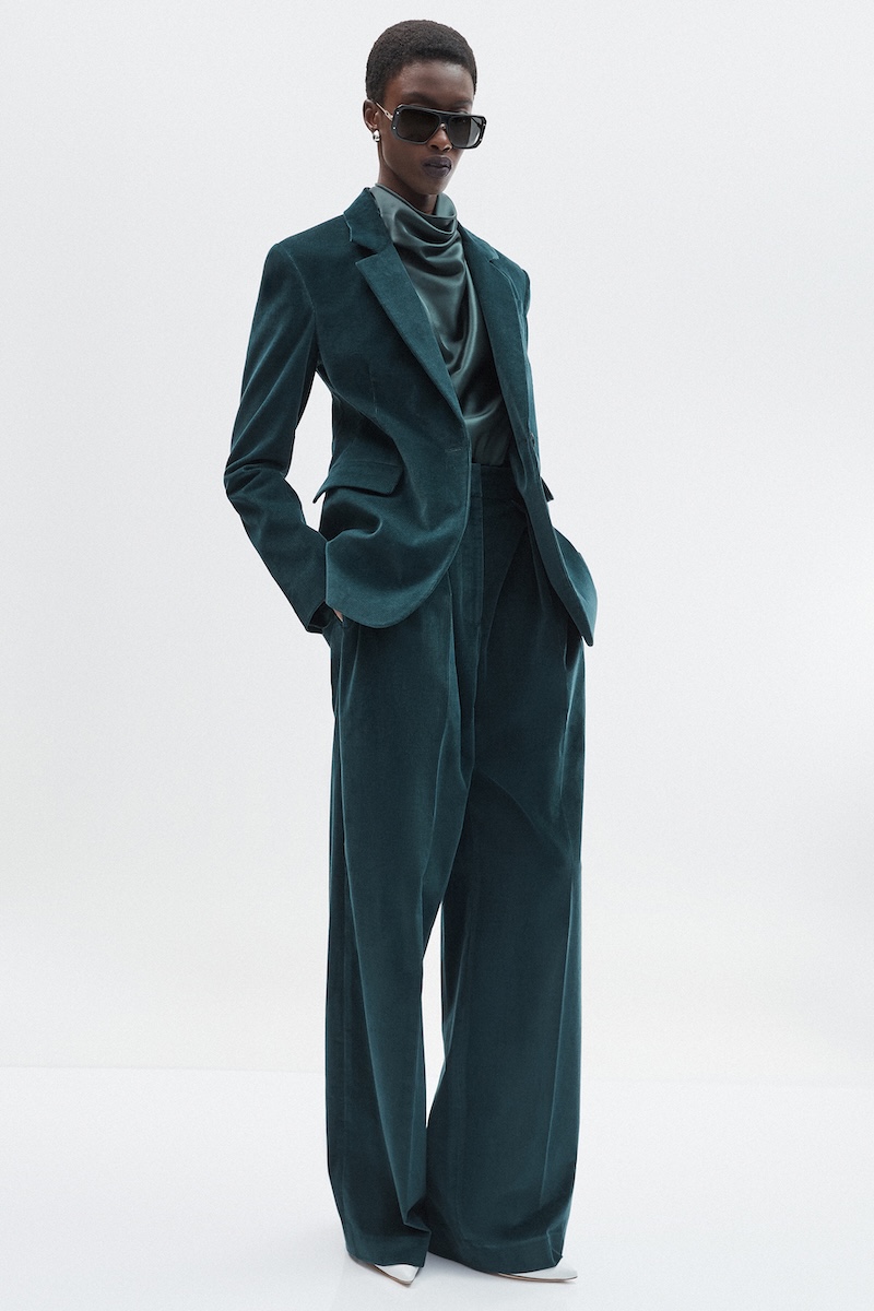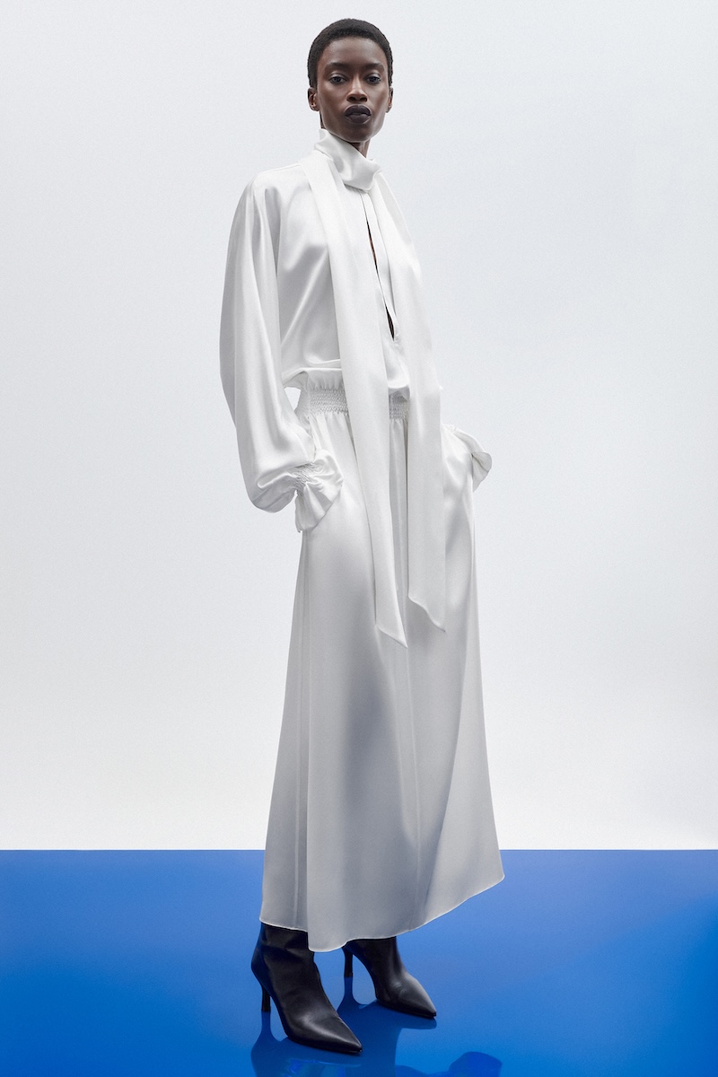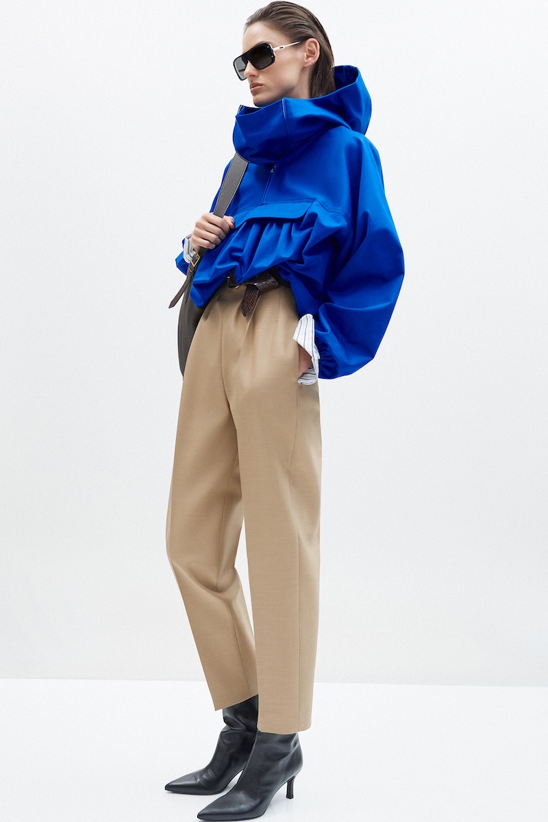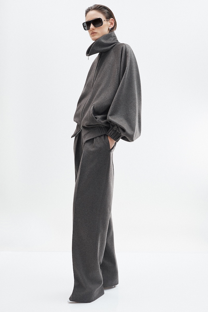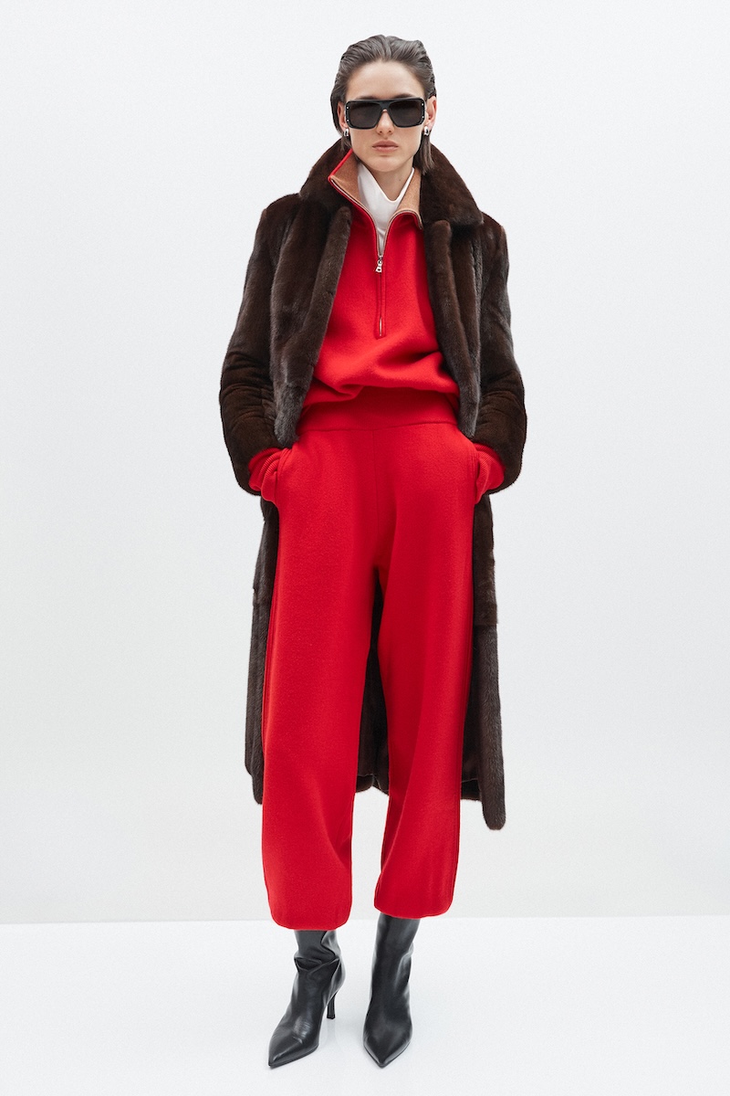 ロゴや派手な装飾に頼らず、一目でその上質さが伝わる素材使いと控えめなエレガンスを追求してきた「アダム リペス」。そのコレクションは、間近で手に取り、じっくりと向き合うことで豊かさを実感できる服です。クラシックカーからインスピレーションを得た今シーズンは、ドローストリングで構築的なフォルムを描いたアウターやハーフジップのフード付きプルオーバー、エラスティックウエストのパンツなど、スポーティなディテールを取り入れたアイテムも登場しました。しかし、それらはピュアシルクやダブルフェイスのカシミアで仕立てられたラグジュアリーなものばかり。スポーツウェア由来のディテールでありながら、その印象はあくまでエレガント。クラシックなアメリカン・スポーツウェアはあくまでディテールとしてリペス流に取り入れられており、ほとんどのルックは都会の女性が纏うエレガンスを体現しています。カラーパレットは、クラシックカーを想起させる鮮やかなブルーやレッドをアクセントに、アルプスの銀世界を思わせるウィンターホワイトやキャメル、ニュートラルな色彩で上品にまとめられました。