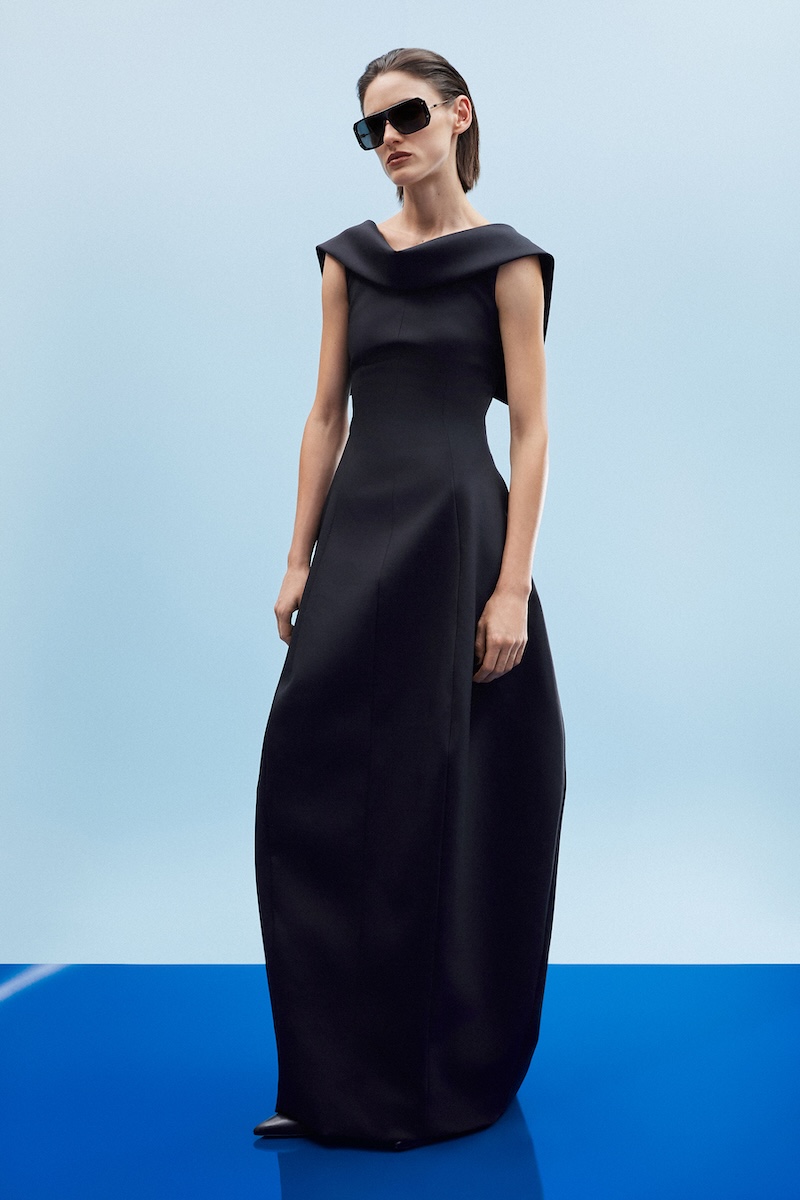 「ファム・シュヴァル」は、植民地時代に“欲望の対象”や“見られる存在”として描かれてきた女性像への抵抗でもあります。透け感のある素材から覗く肌や、ボディラインを際立たせるニットドレス、ヒップを強調したライディングジャケットは、女性の身体を美しく浮かび上がらせます。しかしそれは他者の視線に応えるためではなく、自らの意思で装いを選び取る、エレガントでありながら反逆性を秘めた自立した女性像を表現しています。
