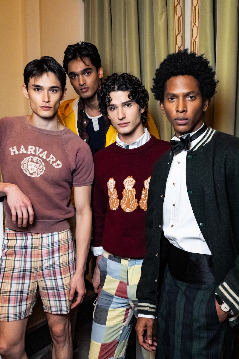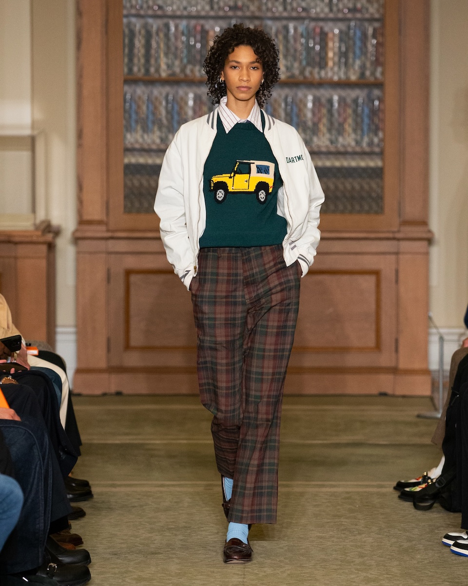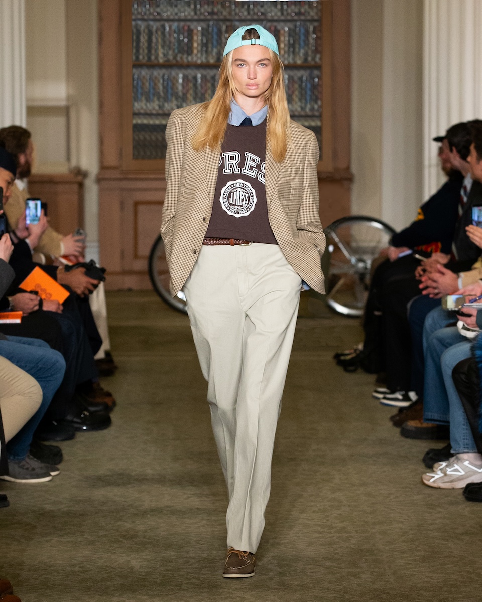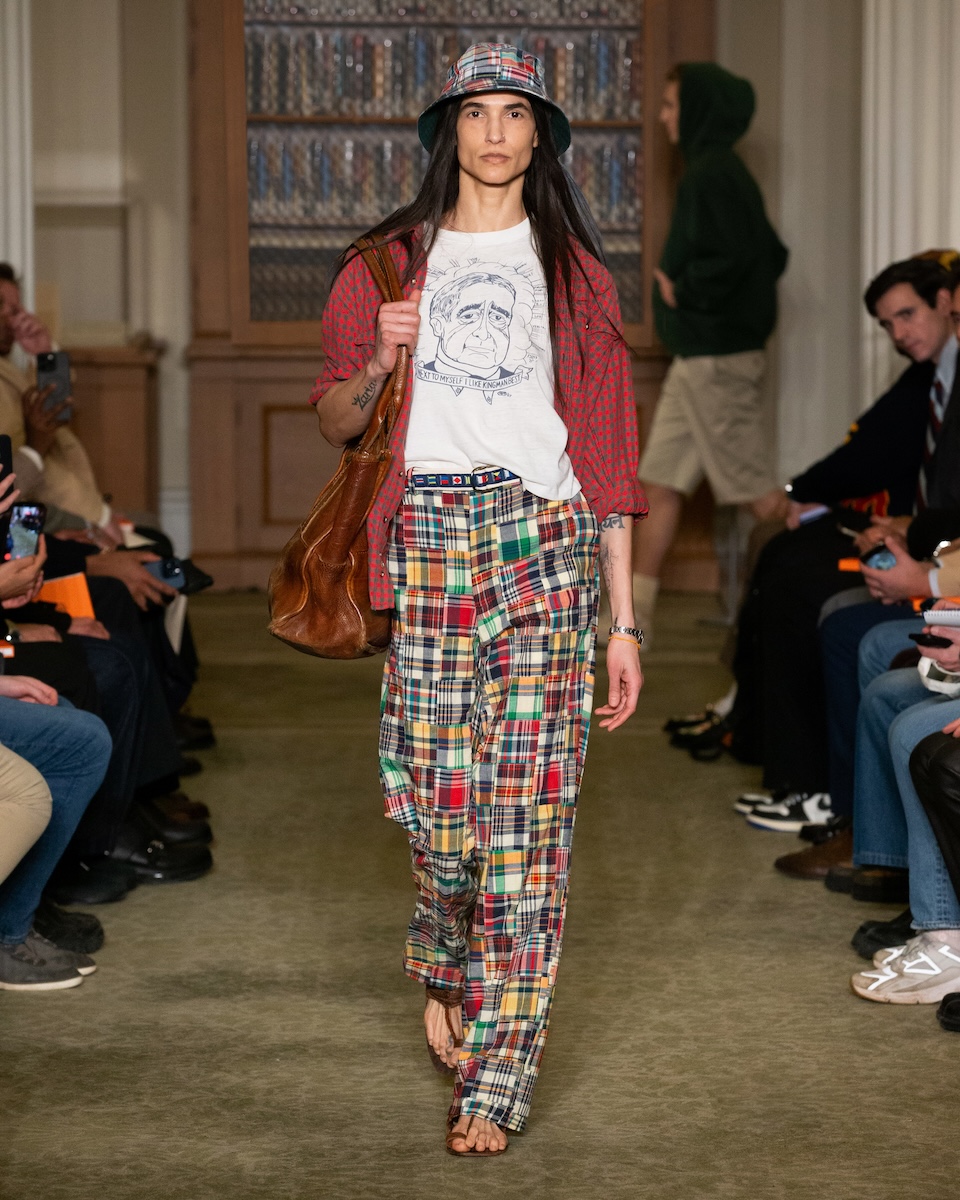 アイビースタイルの真っ向勝負はニューヨーク・ファッション・ウィークの中でも新鮮に映りました。オックスフォードシャツやガーメントダイのトラウザーズ、カレッジロゴTシャツといったアイビーの定番が、王道のスタイルで展開されています。