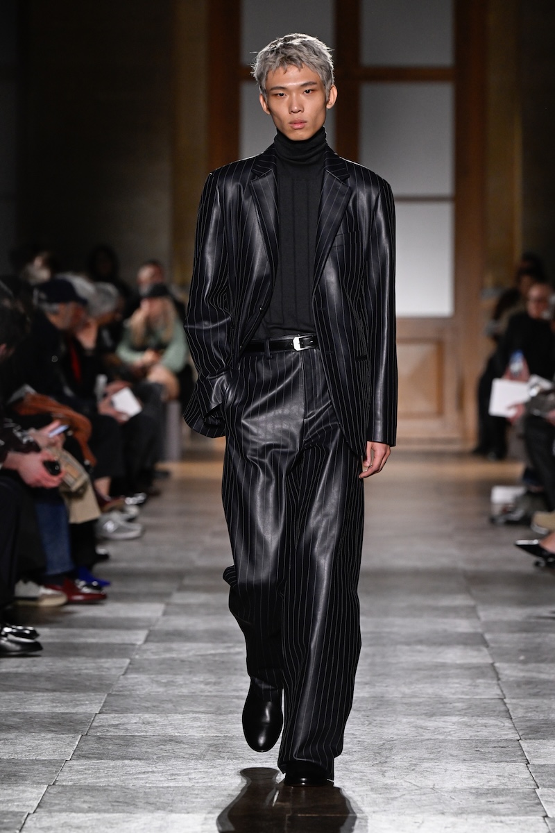 「コム デ ギャルソン・オム プリュス(COMME DES GARCONS HOMME PLUS)」は、2026-27年秋冬メンズ・コレクションをパリで現地時間1月23日に発表した。ブラックやグレーに覆われがちだった今季のパリメンズの会場周辺で、一際鮮やかな存在感を放っていたのが同ブランドのオフランウエイだ。ピンクやレッド、蛍光カラーを取り入れた来場者のスタイリングが、冬のパリに強いコントラストを生み出していた。“希望”や“祈り”を色に託してきた川久保玲デザイナーの思想を体現するかのように、そこには今季のパリでもっとも平和的で、愛に溢れた光景が広がっていた。