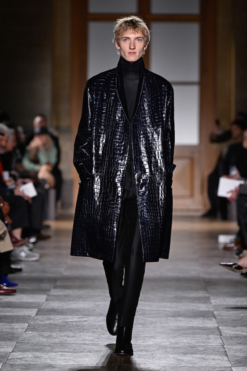 締めくくりとして、会場のスクリーンには、ヴェロニクの就任からの軌跡が過去のショー映像とともに映し出された。10年前、20年前、30年前のルックにも、古さは微塵も感じられない。来場者に配布されたコレクションノートには、こう記されていた。「Clothes like old friends(古くからの友人のような服)」。「Clothes for today and forever(今日のため、そして永遠のための服)」。彼女が向き合ってきたのは、一過性の流行ではない。着るほどに、時を重ねるほどに、その意味を深めていく服作りである。