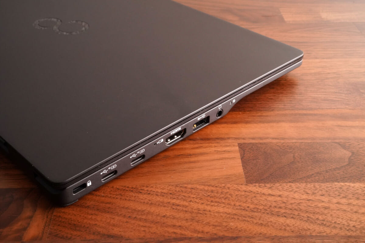 冷静になって考えてみると、「LIFEBOOK UH-X/E3」の重量634gって「iPad Pro 12.9インチモデル」(重量641g)より軽いんですよね。本体サイズがグッと小さくなったことも合わせ、カバンに入れて持ち歩くときはもちろん、自宅でのちょっとした移動でも負担感がびっくりするほど軽減されます。新型コロナ流行以降、モバイルへのニーズは急増していますが、モバイルしない人にもこの軽さの恩恵はあると感じました。