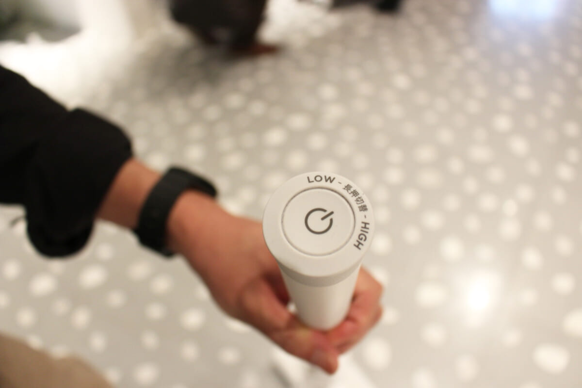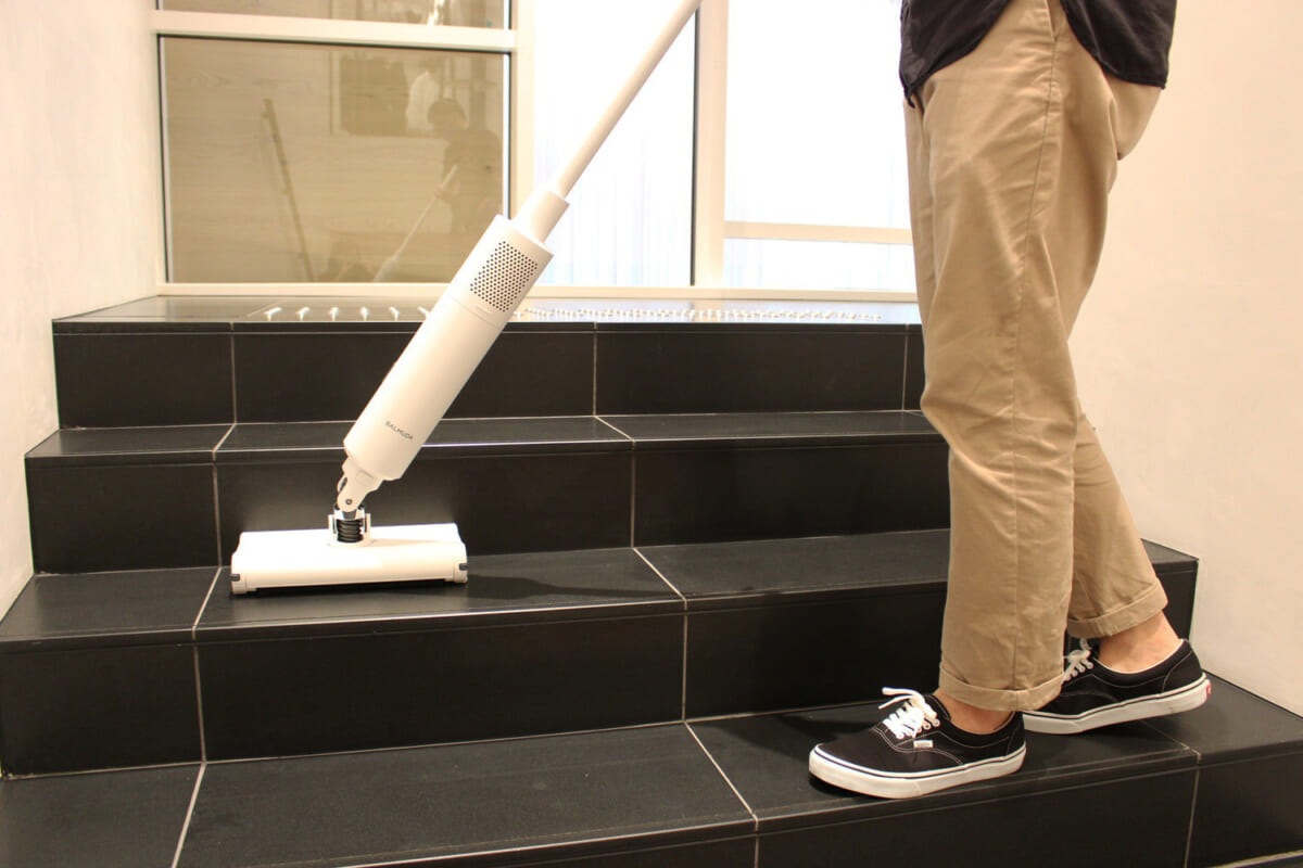 ↑BALMUDA The Cleanerは「ホバークラフトとミニ四駆から着想を得た」(寺尾 玄社長)という、少年の夢が実現したかのような掃除機です。カラーはホワイトとブラックの2色。本体サイズはW300×D165×H1240mm、本体質量は約3.1kg(フィルタ―含む)で、運転時間は標準モード30分、強モード10分
