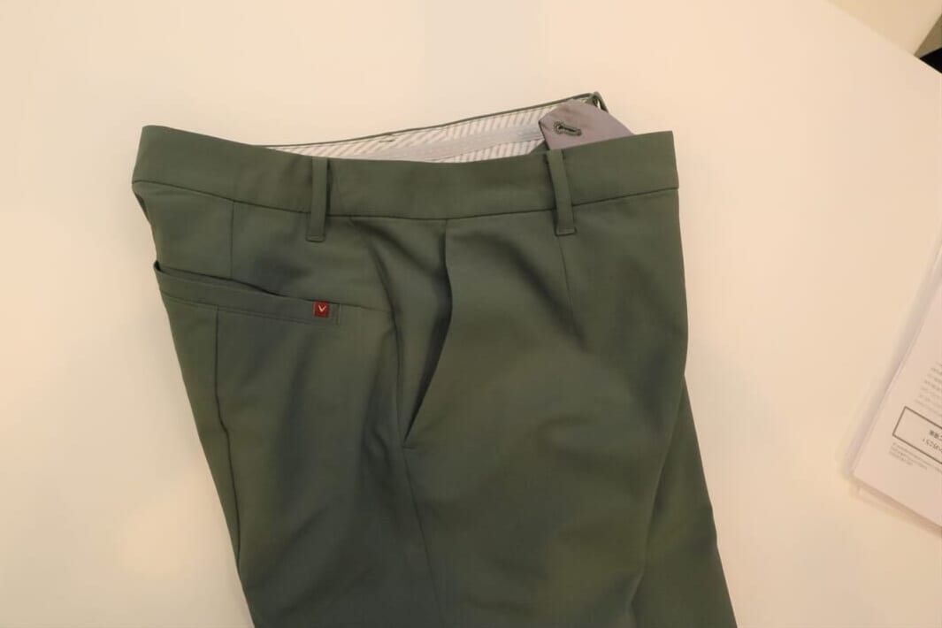 さらにデザイン性の高さにも注目。石川プロが、プレイ中でもカッコ良く、プレイが終わったらそのまま記者会見やパーティーに参加できるようにと、オン/オフ両方で使えるカッコ良さを追求したデザインになっています。一見シンプルだけど、「CALLAWAY RED LABEL」の赤いワンポイントがアクセントになり、とてもお洒落です。ゴルフだけでなく通勤や、結婚式のようなハレの場でも使えそう。