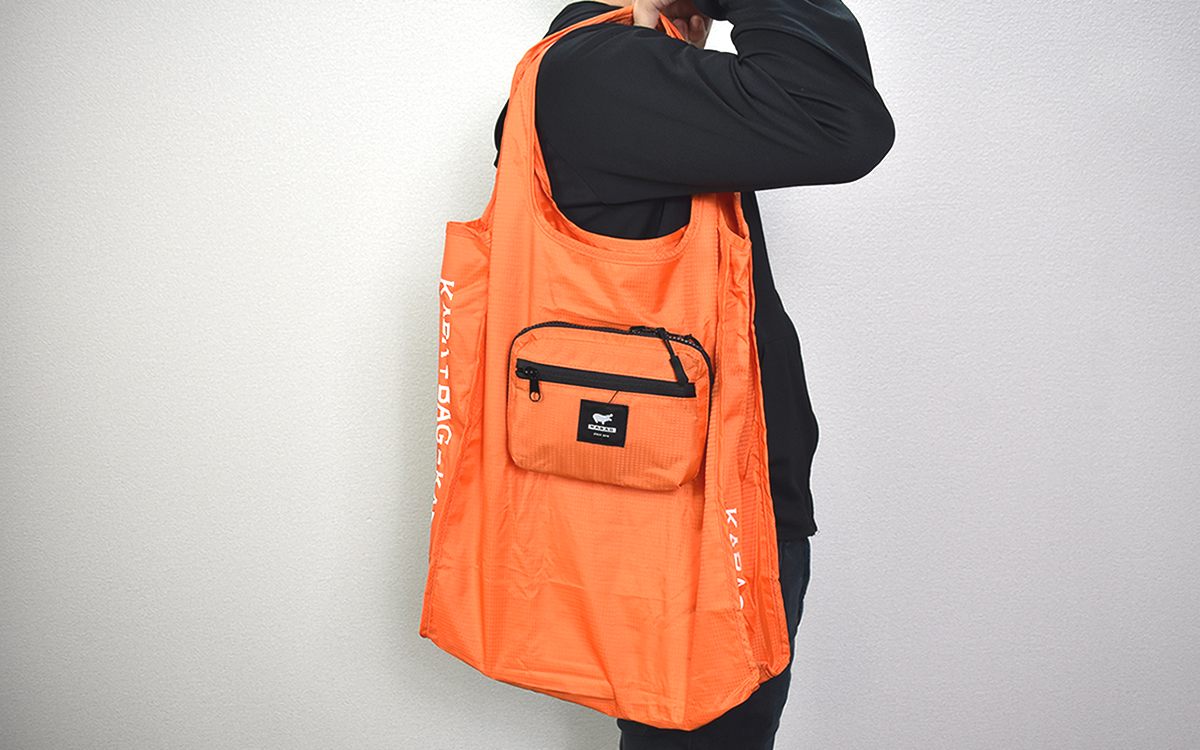 エコバッグのサイズは大きすぎず小さすぎず、中に入れた弁当などが傾くのを防ぐマチを設けている上、ペットボトルのような縦長の製品にも対応する形状。使用しやすいサイズ感と形にこだわっています。素材はサステナブルなリサイクルナイロン100%を使用した、高い技術力によるMADE IN JAPAN。くしゃくしゃにしても丈夫かつ、環境や人体に影響の少ないフッ素フリーの撥水加工が施されています。