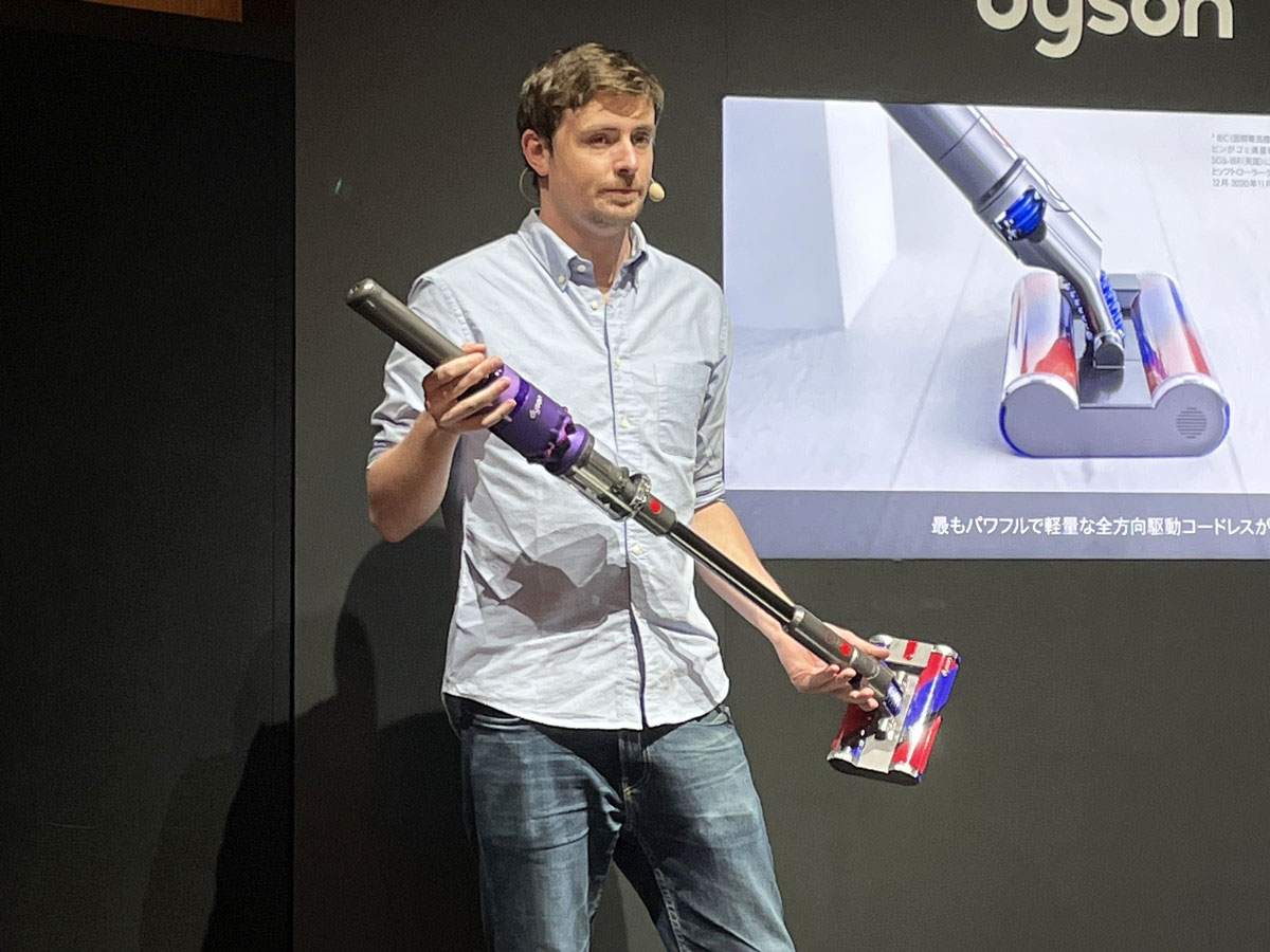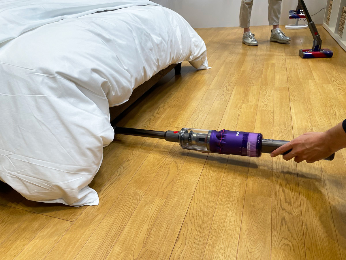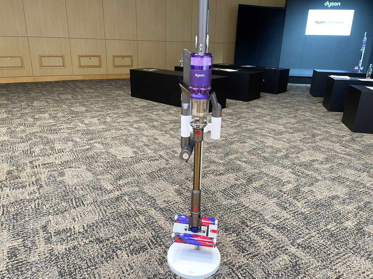 ちなみに、ダイソン オムニグライドを見た家電メディア関係者がおそらく全員、思ったことがあります。それは、本機が昨年11月に発売されたバルミューダの「BALMUDA The Cleaner」によく似ている……ということ(ダイソン オムニグライドは韓国で昨年7月に先行発売)。2つのブラシによる浮いているような操作感、ヘッド底部のローラー(キャスターホイール)、自在に曲がるジョイント部……そっくりですね。