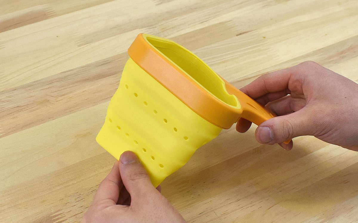 ↑バルミューダの「BALMUDA The Cleaner」(実売価格5万9800円)。2つのブラシをそれぞれ内側に回転させ、床面との摩擦を低減。クリーナー自体が浮いているかのようなの操作感を実現するとともに、2つのキャスターを搭載してあらゆる方向への移動を実現しています