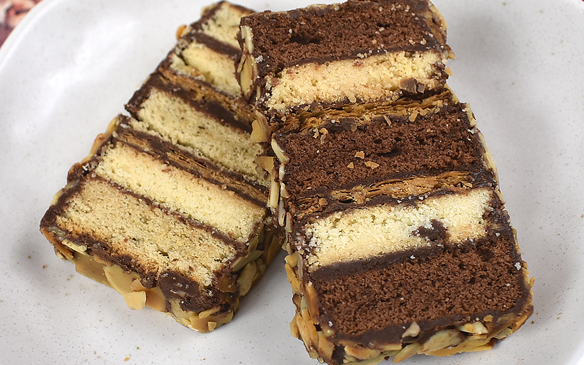 「しっかりと焼き色がついていたら完成です。仕切りのところでカットしていただきましょう」
