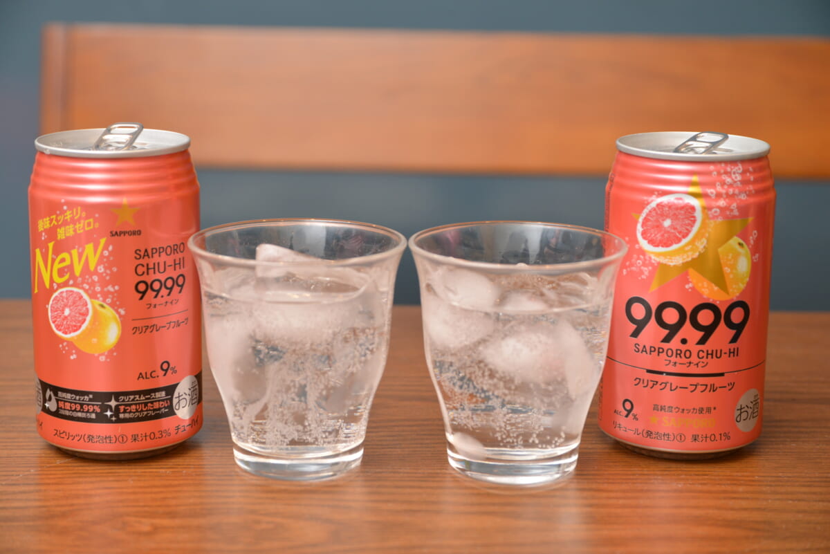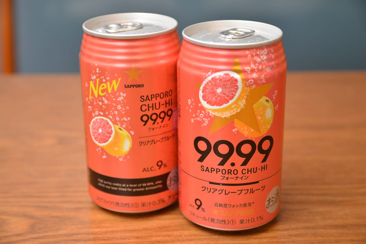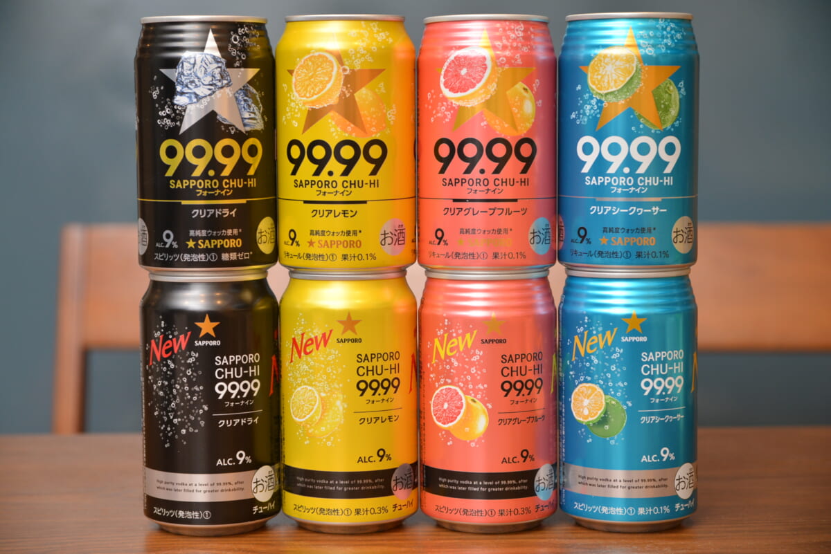 サッポロを代表する缶チューハイのひとつが「サッポロチューハイ99.99(フォーナイン)」。2018年にデビューし、RTD(=Ready To Drink、開封してすぐ飲める缶やペットボトル入りのドリンク)ブームで様々な新作が乱立するなか頭角を現し、一大ブランドに成長した人気商品です。それが4月6日、大幅なリニューアルを遂げたとのこと。真価を知るべく、4つのフレーバーを新旧で飲み比べました。