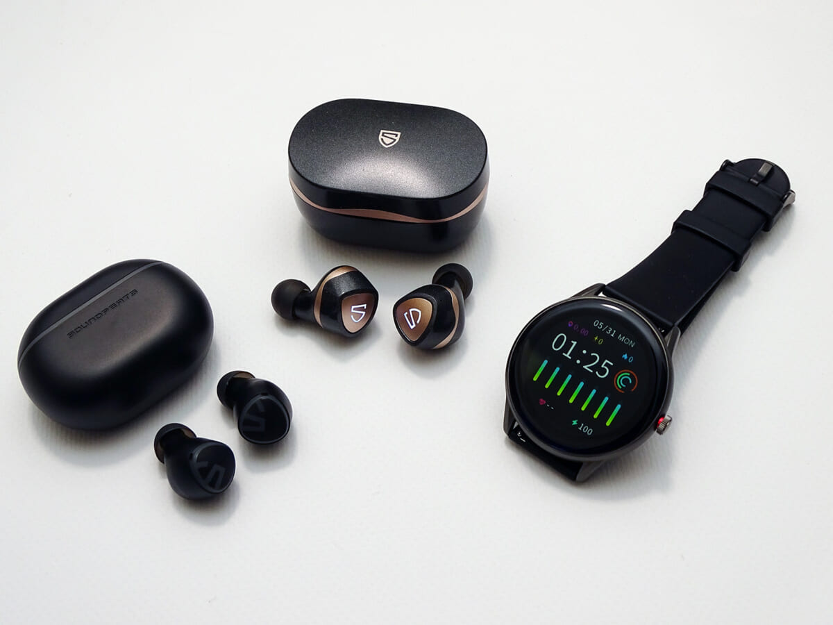 シリコンベルトを合わせたウォッチ本体が約53グラムと軽いので、体を動かすスポーツシーンでも軽快に身に着けられます。ペアリングしたスマホによる音楽再生を、Watch Pro 1を使って手元からコントロールできるので、SOUNDPEATSのイヤホン、スマートウォッチ、スマホアプリ「SOUNDPEATS SPORTS」の“3点セット”を揃えればトレーニング中の音楽リスニング環境がかなり充実します。