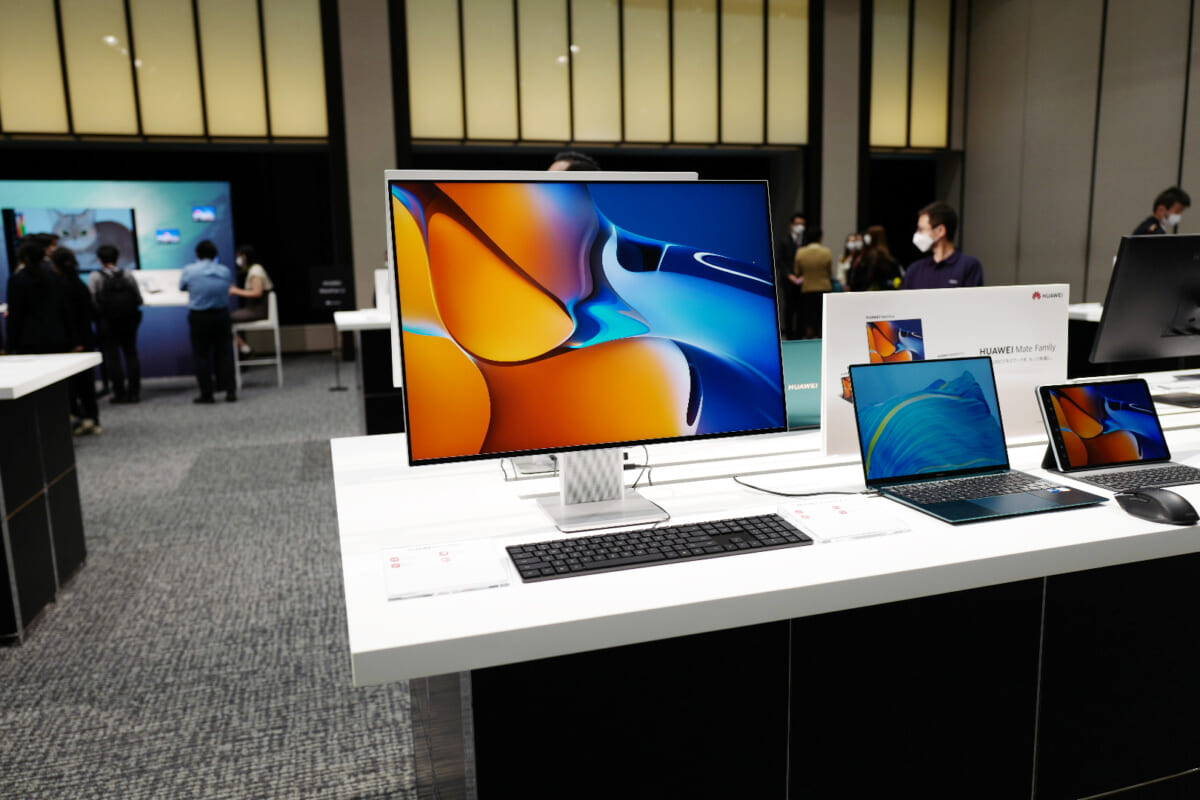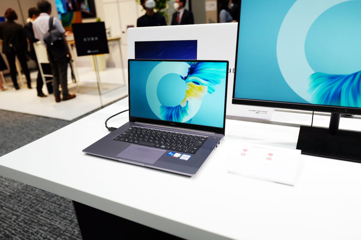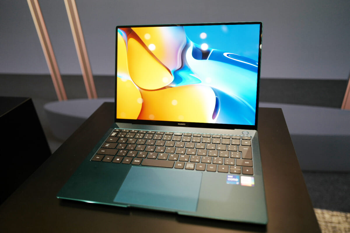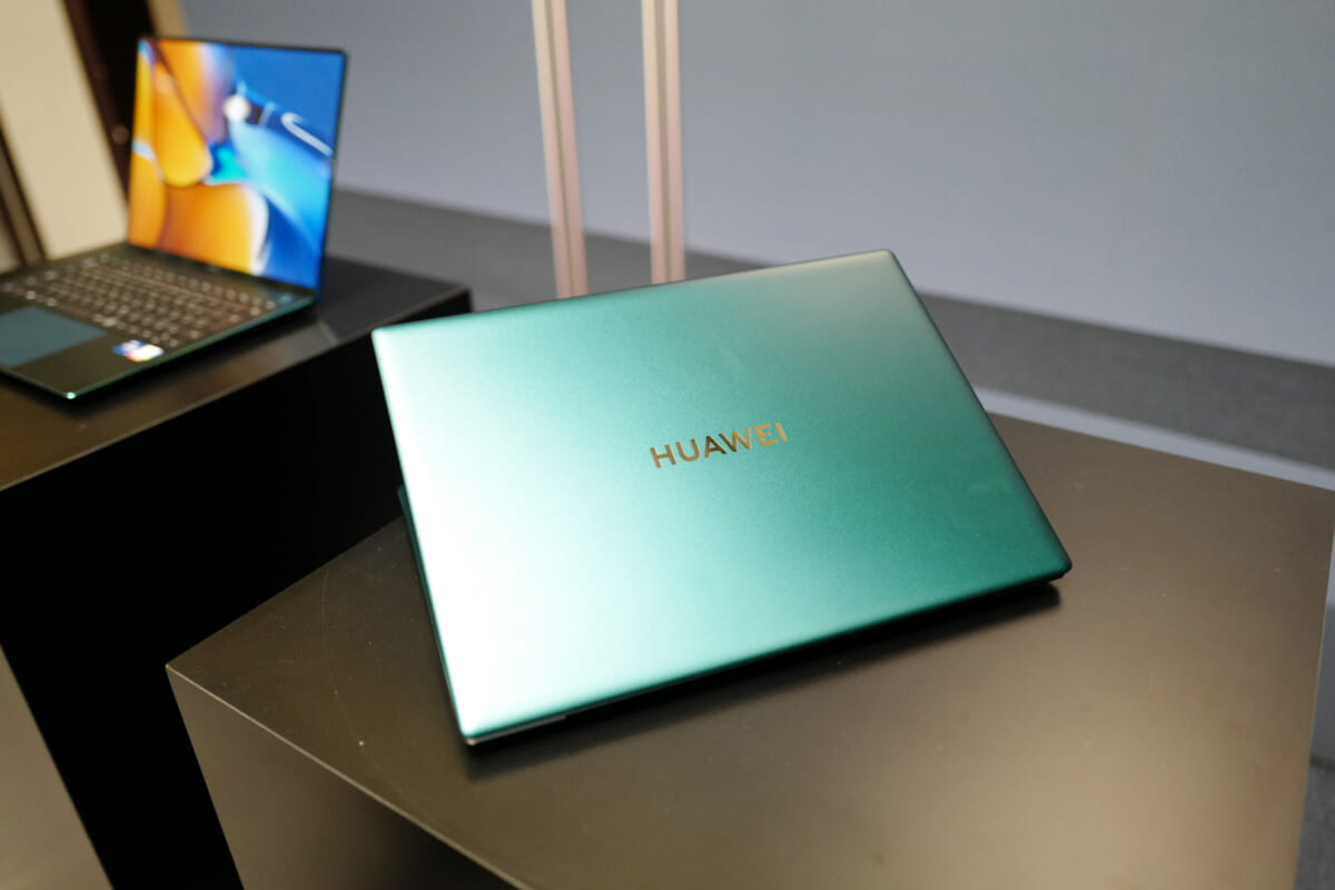 ↑トップカバーには、別素材をはめこんで「HUAWEI」のロゴをあしらっています。メーカー名やモデル名を大きめにあしらうデザインは、このところスマートフォンの分野でも多く見られますが、MateBook X Proの場合はフォルムがシンプルなので、くどくならず、デザイン的にうまくまとまっていると感じられました