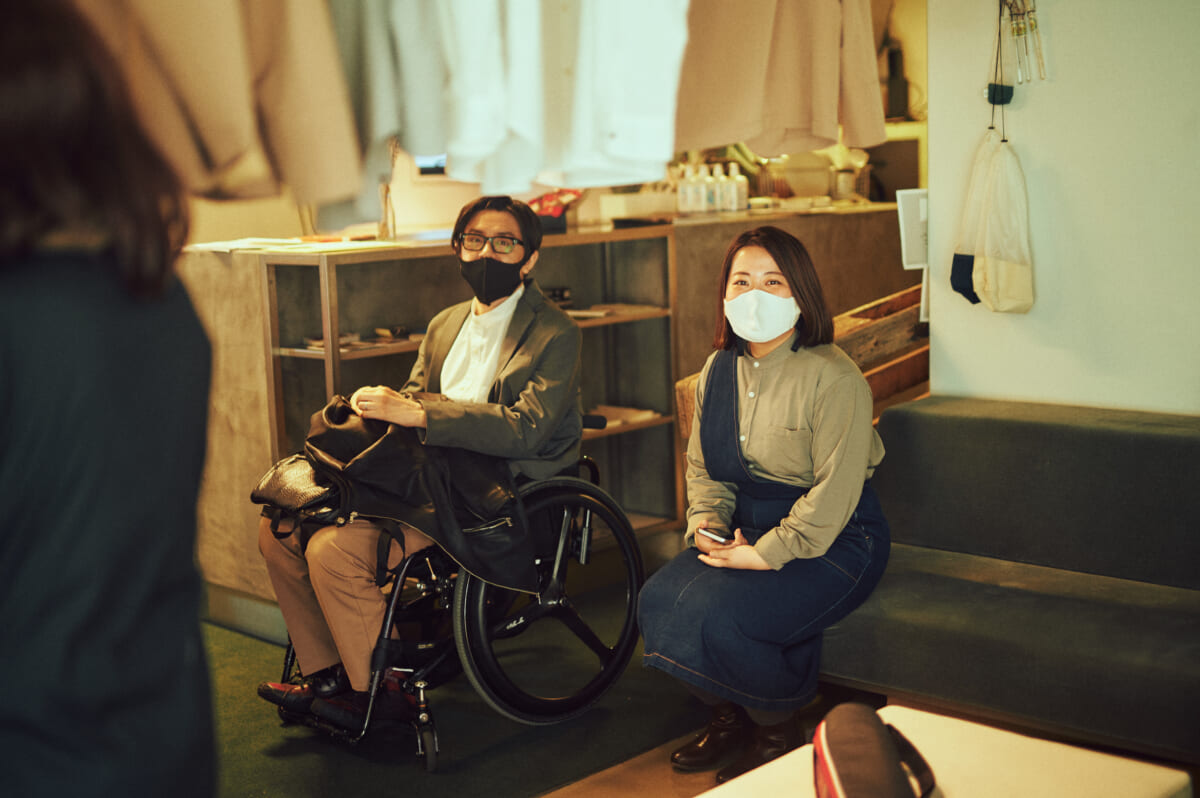 田中 今までパーカーなど頭からかぶる形状の衣服しか着ることができなかった方が、SOLIT!の服を着れば気兼ねなくデートに誘える!」と喜んでくれました。これを聞いてチームの皆で「最高じゃん!」と盛り上がりましたね。そのほかにも「このジャケットを着れば娘の結婚式に行ける」と話してくださった年配の男性もいました。健常者にとっては“one of them”でしかないボタン付きのジャケットやシャツですが、これらを着ることによってできることが増える人たちがいる。ファッションは社会参加の部分にまで関わるということを実感しました。
