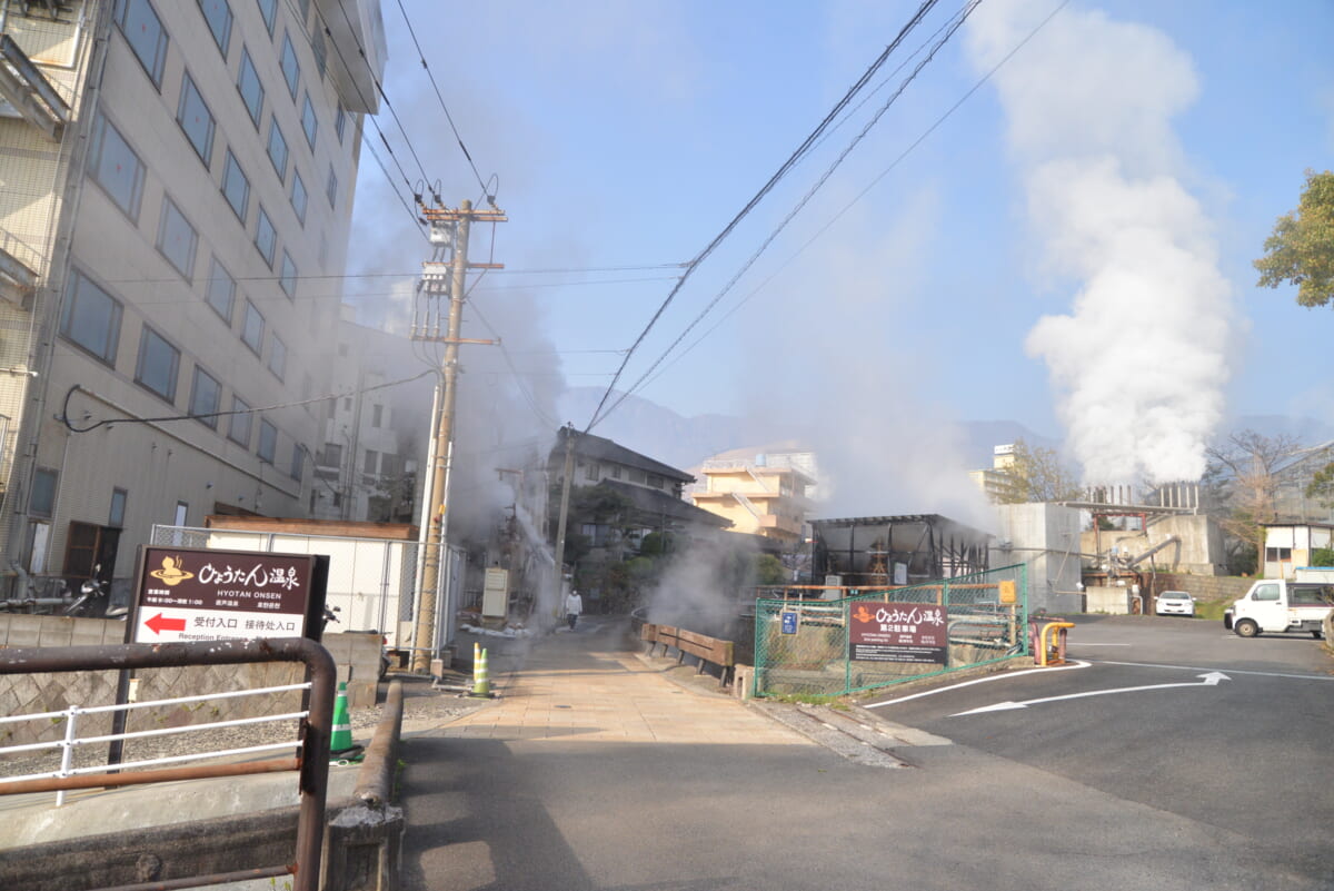 ↑別府の「鉄輪温泉」エリアは湯けむりで有名。北浜エリアから車で15分の場所にあり、企業の希望によっては鉄輪を巡るプランも提案可能とか