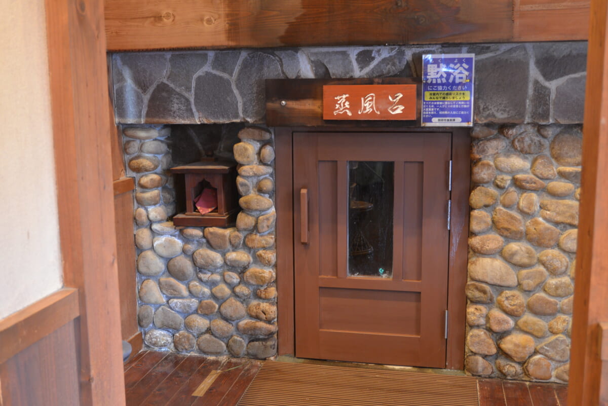 ↑「鉄輪温泉」の名スポットのひとつが「鉄輪むし湯」の蒸風呂。石菖(せきしょう)という薬草を敷き詰めた8畳ほどの石室のなかで、約10分間寝そべってととのえます