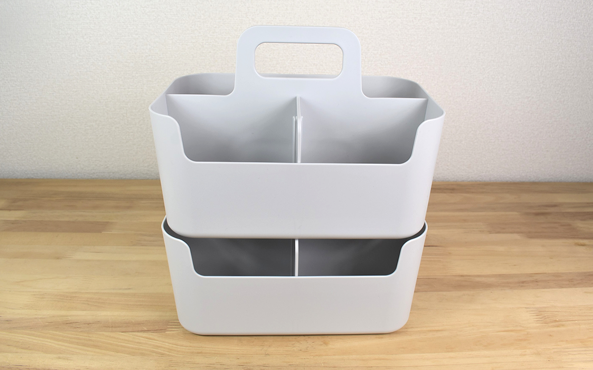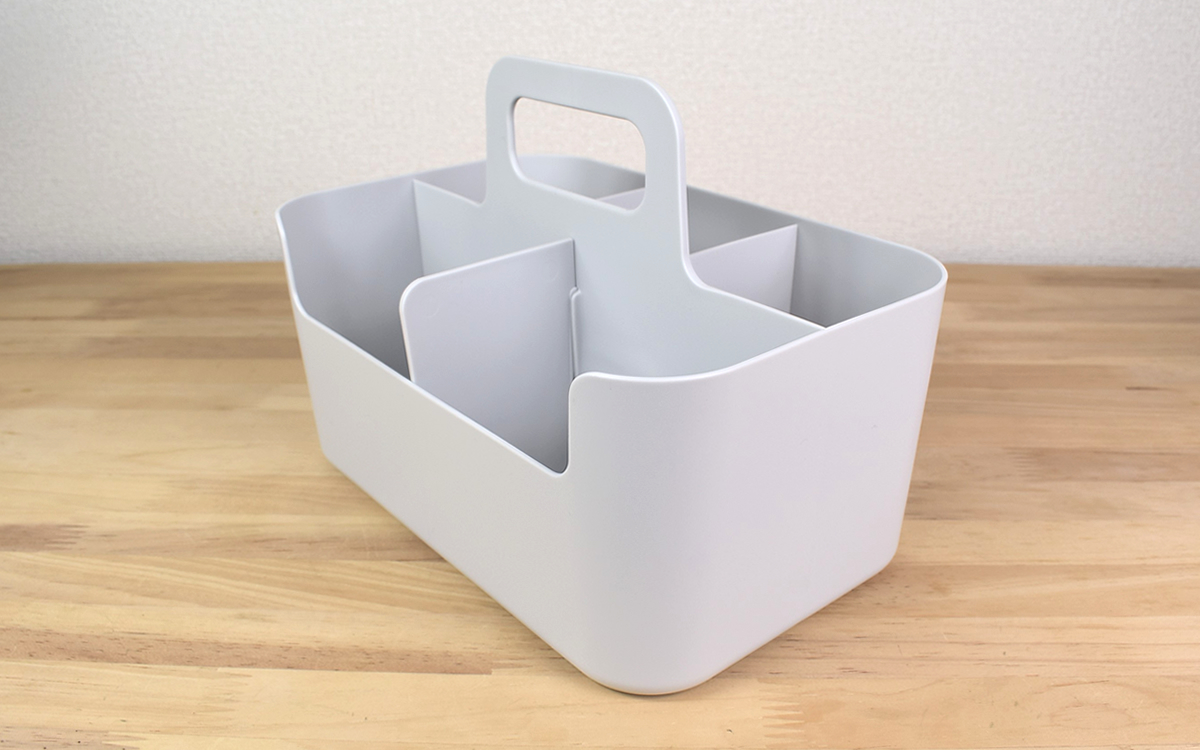 完成したタライの寸法は約40.5(幅)×42.6(奥行)×16.5cm(高さ)。ちなみに折りたたみ時は高さが約4.5cmまで縮まるため、収納スペースの確保に困ることはありません。