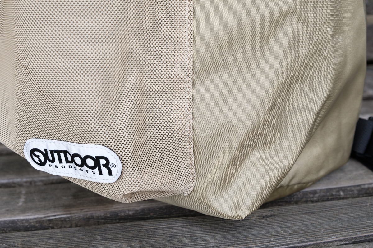 こちらがアウトドアプロダクツからリリースされたサウナバッグ「SAUNA BAG LARGE」です。本作は、「サウナイキタイ」のポスターモデルをはじめ、ラジオ「清水みさとの、サウナいこ?」(AuDee/JFN全国21局ネット)のパーソナリティーを務める女優の清水みさとさんと、アウトドアプロダクツとのコラボレーションモデル。“お散歩をして、サウナに行って、ととのって帰る”をコンセプトに、お散歩とサウナを快適にするための機能性を持たせています。ボディ素材は工場から回収された製造廃棄物を再生しているもので、強度や耐久性、撥水性に優れているのはもちろん、環境にも配慮していますよ。