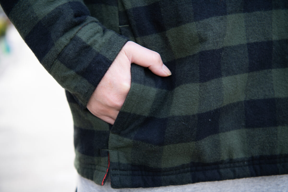 裏地には起毛トリコット生地を使用し、中わたは体の輻射熱を有効活用する光電子®ダウンを使っているので、保温性も抜群です。