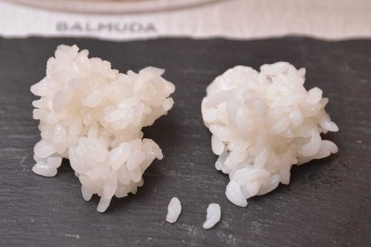 とはいえ、炊きたてと比べるのはハンデがありすぎるので、冷まして作り、約3時間置いたおにぎりでも食べ比べを実施。ただこちらでも「BALMUDA The Gohan」はハリや豊かなうまみがほぼ損なわれておらず、時間が経ってもおいしいことを実感しました。