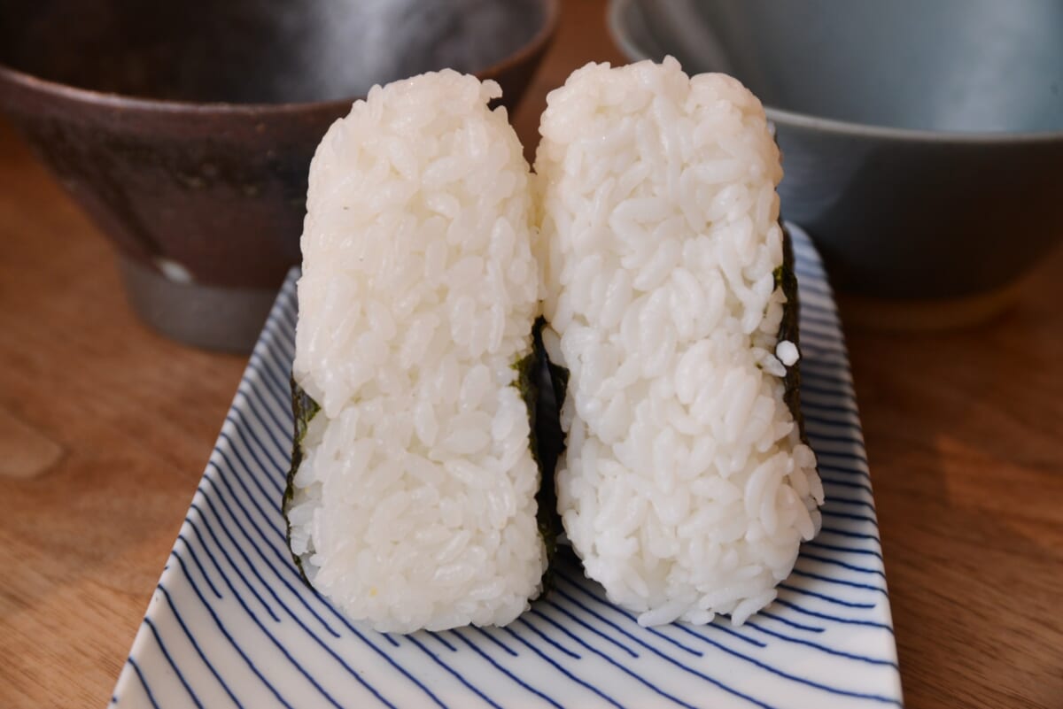 ↑左の「BALMUDA The Gohan」はおにぎりにしてもハリやうまみを実感! 右のパックご飯おにぎりはうまみがややぼんやりしていました
