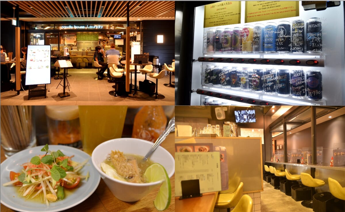 ↑「Noodle House Laundry」は東京駅内にあり、アジア系メニューと麺料理、クラフトビール(クラフト自販機も併設)がウリです