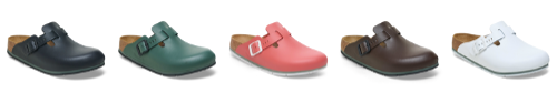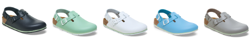 BOSTON PRO、TOKIO PRO、KAY PROはアッパーのナチュラルレザーにPUコーティングを施し、水や油跳ね・熱に強く、さらに通気性にも優れます。耐滑性のあるTPU製アウトソールには、ビルケンシュトックならではのボーンパターンに加えて、横方向に走らせたミゾの構造で水はけのよさを追求。バックルは洗いやすく、清潔に保つことができます。それぞれに異なる仕様のストラップをもつ三つのモデルから、厨房や医療現場など様々な職場で最適なスタイルを選択可能です。