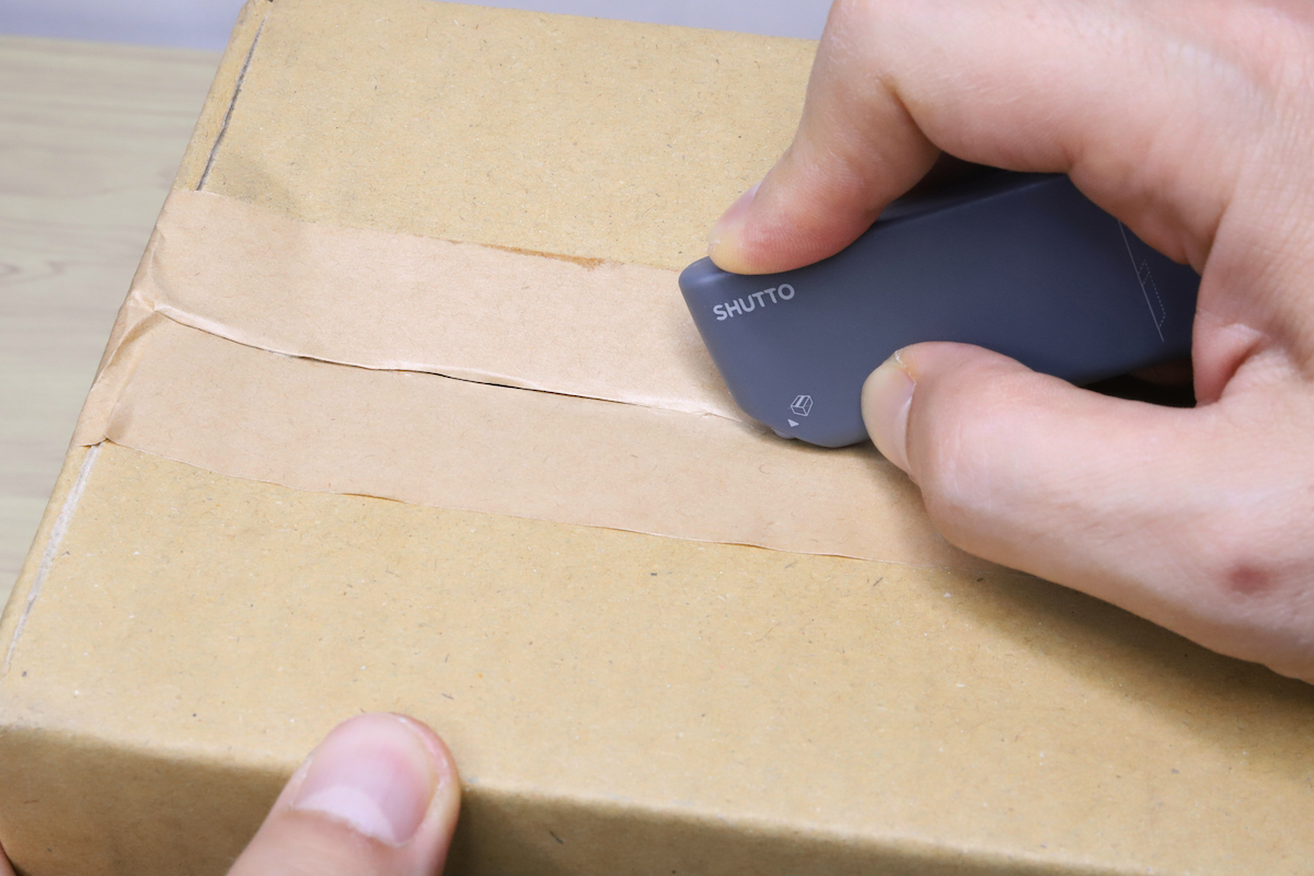 ミドリはもともとこの開梱カッターというジャンルに強いため、開梱性能に関してはまず疑うところはない。刃の切れ味も程良く、スムーズにテープを切り開くことができた。