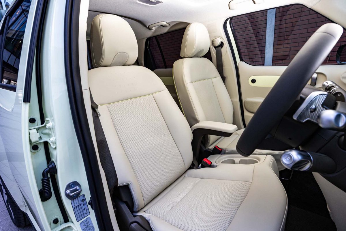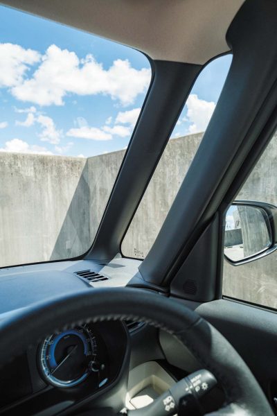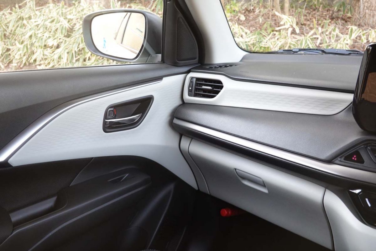 ボディカラーに「コスモブラック」を追加し、窓枠とクオーターピラーのガーニッシュにグロスブラックを採用。リアにあった説明っぽい「BUILD YOUR DREAMS」から「BYD」へと変更されてもいます。インテリアは大きな変更はありません。個性的なデザインのダッシュボードやドアパネルはそのまま。しかし、ダッシュボードをはじめとして、全体の質感は極めて高いものとなっています。ボタン類の表面処理や手触り感、操作時の触感に至るまでとても質感が高いのです。