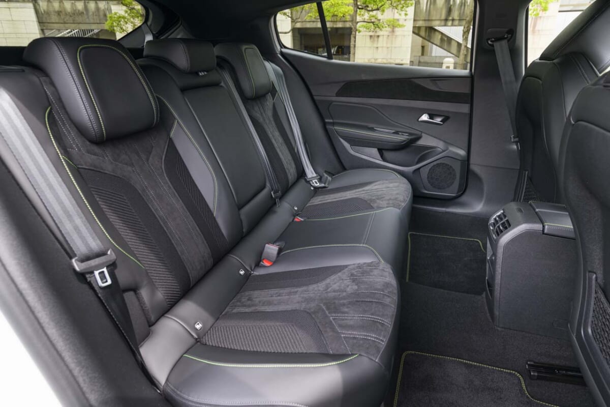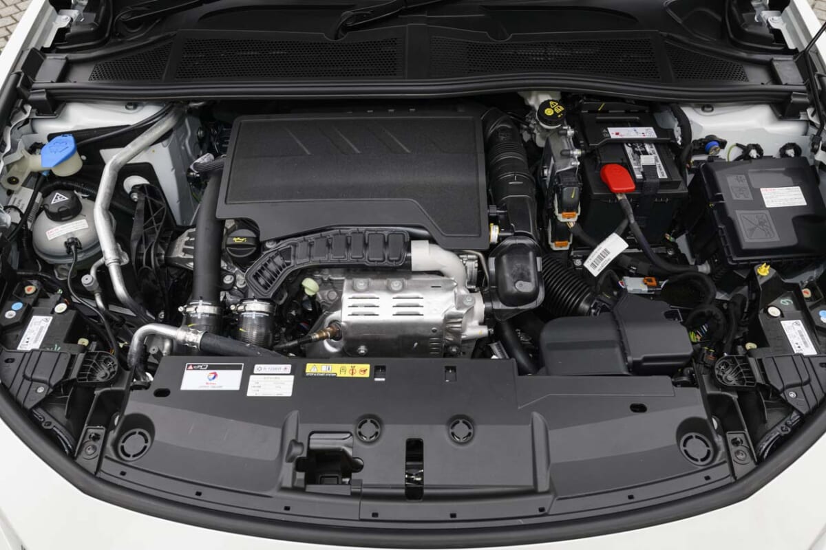 インテリアでは N Line専用アルカンターラ+本革コンビシートを採用し、この前席にはラウンジと同じくヒーター&ベンチレーション機能を装備しつつ、Nならではの差し色ともいえる赤のステッチ+ストライプを追加。これはベース車との違いをもっとも感じさせる部分といえます。ほかに専用装備として前席メタルドアスカッフプレートやNロゴ付きステアリングなども加えられ、ラウンジと同様、フルスペックのADAS機能や、12.3インチAR機能付ナビ、BOSEプレミアムサウンドシステムなどを装備しているのもポイント。