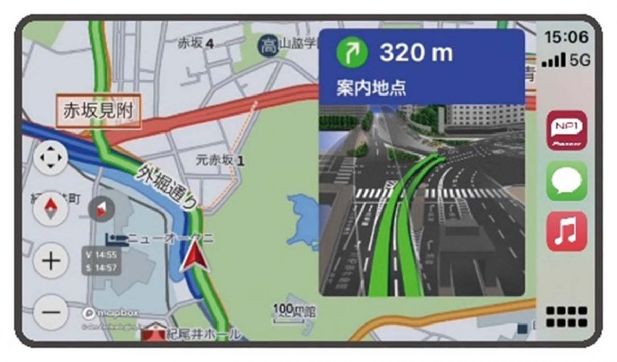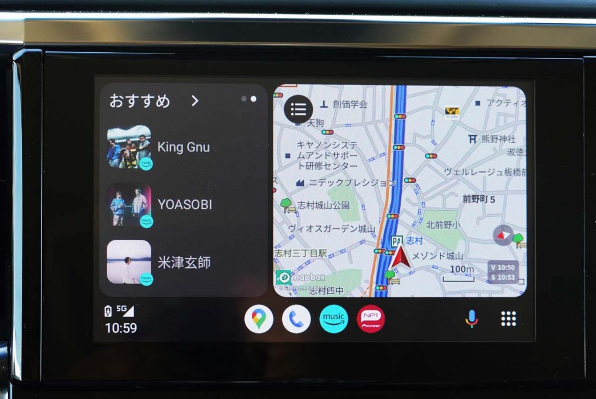 さらに、iPhoneやスマートフォンを接続するだけで、対応アプリを本体ディスプレイに表示し、タッチパネル操作、またはSiri / Google アシスタントによる音声操作で目的地の検索や音楽再生、ハンズフリー通話などが可能です。普段使用している音楽ストリーミングアプリも本機のオーディオシステムで楽しむことができ、走行中でも楽曲やプレイリストを簡単に選択できます。また、「Apple CarPlay」はワイヤレス接続にも対応しているため、乗車してすぐに利用できます。