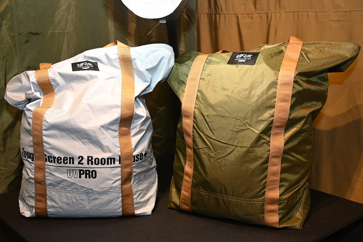 インナーテントを装着し、2ルームとして使用できる大型シェルター。3〜4人で使えるゆとりある広さで、ファミリーユースにも最適だ。スノーピークのテントのなかでも設営はかなり簡単で、初心者にもおすすめ。