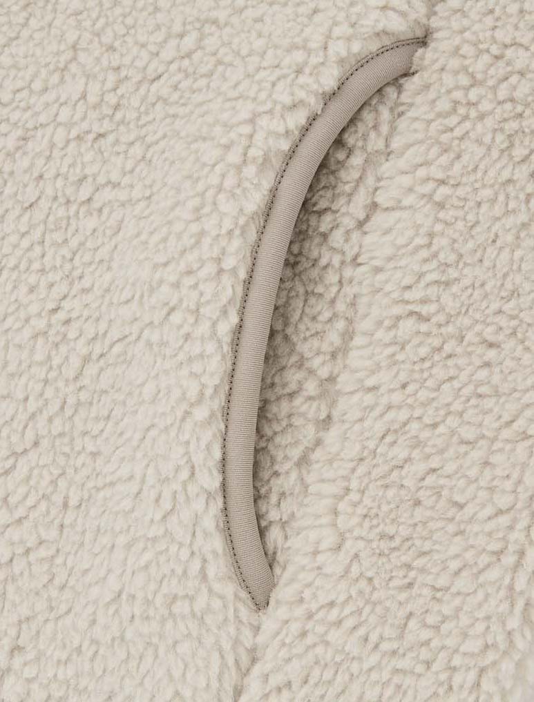 しっとりと柔らかなスーピマコットンと、形態安定性のあるSOLOTEXを使用。リサイクル中綿を使用したライナーは保温性に優れる。撥水加工で雨の日も安心。