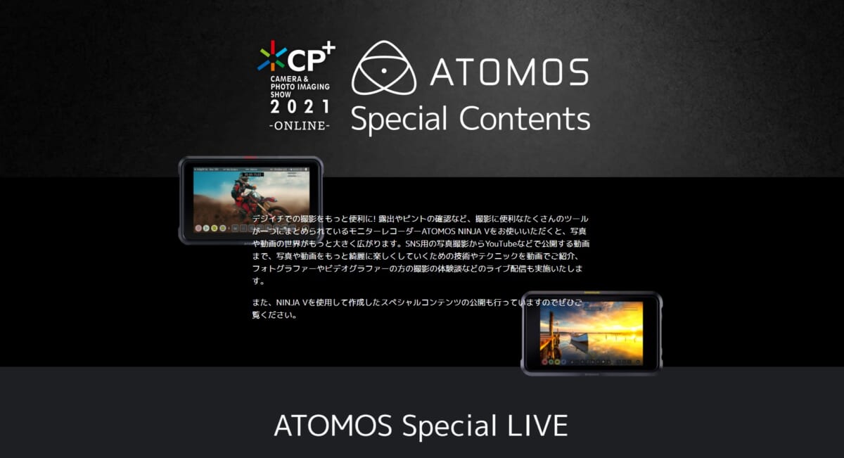 ATOMOSは、ミラーレスカメラのHDMI端子などに接続して使う、外部接続の動画レコーダーを製造しているメーカーです。同社製品を使うことで動画のRAW記録などが行え、撮影後に調整しやすく高品位な映像が制作できます。映像作家には定番のレコーダーということもあってか、動画配信に力が入ったコンテンツが用意されていました。多くのカメラユーザーにはあまり馴染みのないメーカーかもしれませんが、今回のコンテンツを見て、動画撮影やレコーダーに興味を持った方も少なくないのではないかと思います。