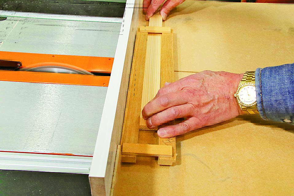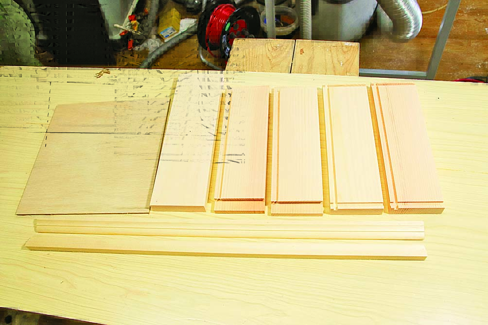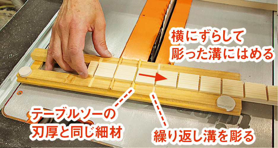 天板と柱になる木材を、木取り図の寸法に合わせて切り出します。