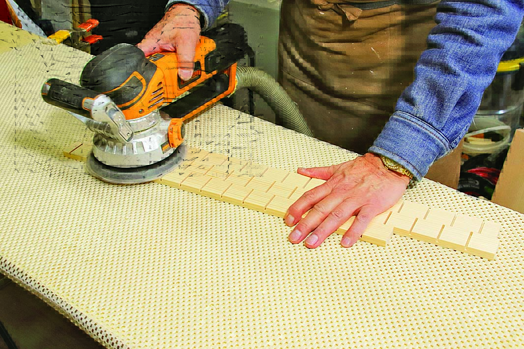 6.木材を紙やすりで整える 。
