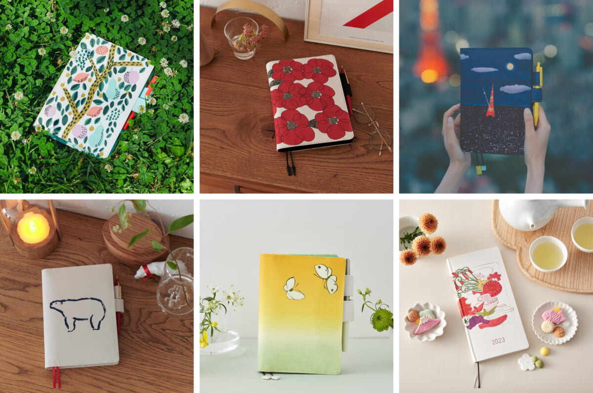 1日1ページのタイプだけでなく、週間バーチカル(時間軸が縦になっているもの)タイプ、週間ノートタイプなど、好みの書き方に応じて選べるだけでなく、スマートフォンより小さなB7変型からA5正寸までのサイズをラインナップ。2021年版には「PAUL & JOE La Papeterie」の新デザインが加わりました。