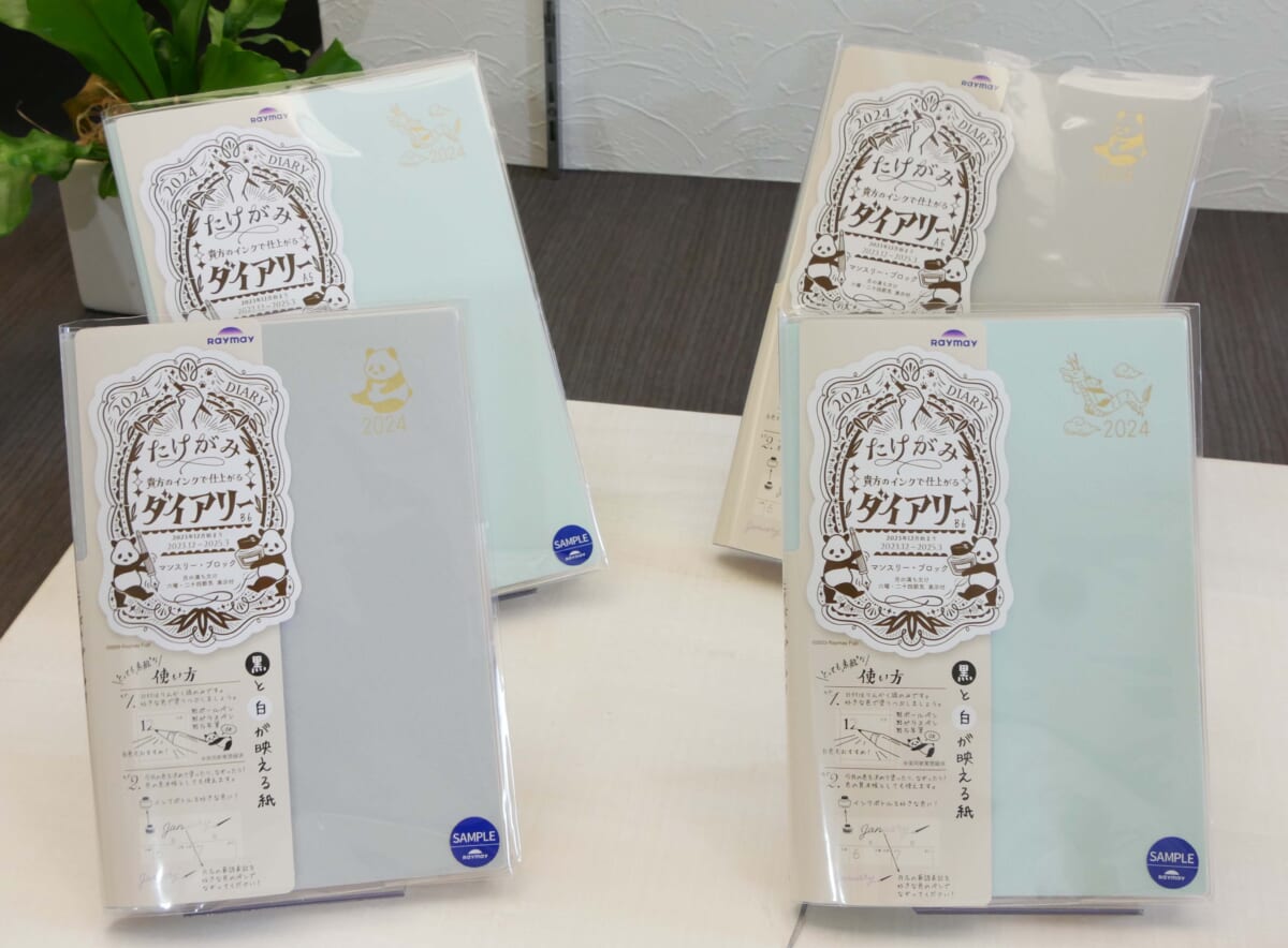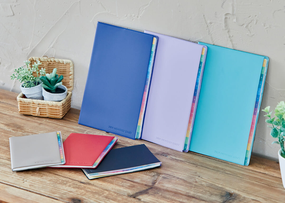 ↑「仕事向けのスケジュール帳ですが、硬くならない優しい色合いのカバーもご提案しています。週間タイプや月間タイプなど、中面はさまざまあるのですが、いずれもタスク管理やスケジュール管理が一冊でしっかりできるよう作られています」