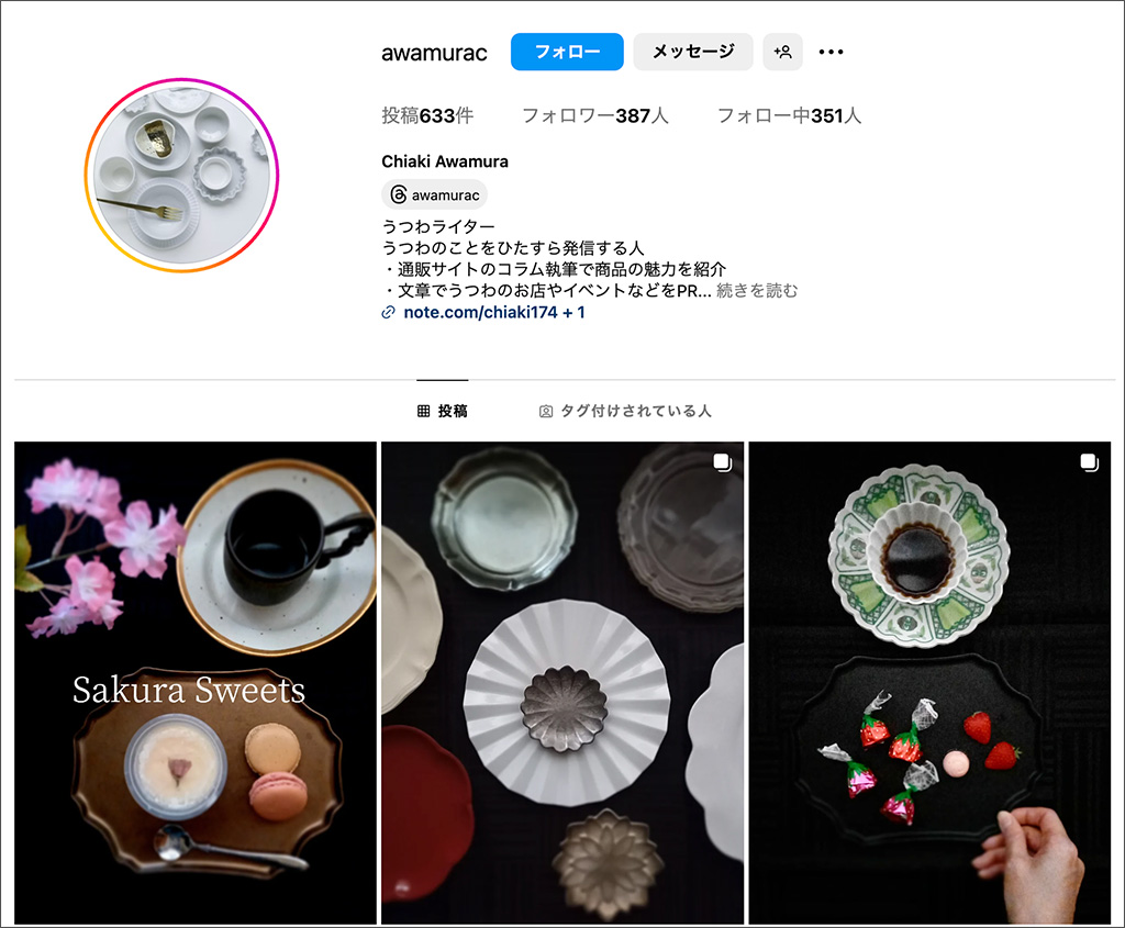 二本柳さんの元で活動する、うつわライターの粟村千晶 さんもInstagramやnoteなどでも推しの作家を紹介しているそうです。