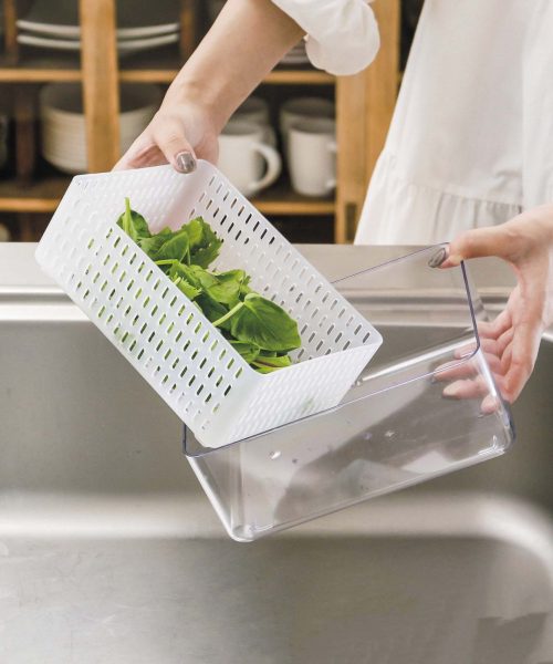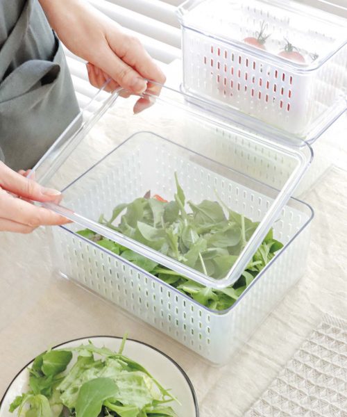 高さ14cmなので、水を切った野菜を容器に入れたまま冷蔵保存もOK