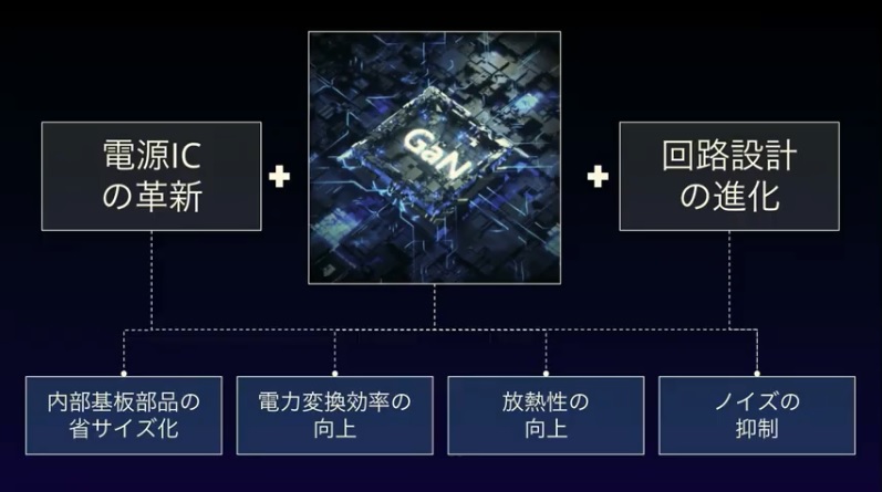 「Nano II」シリーズは、同社が2018年に発表した窒化ガリウム半導体採用の「GaN」技術をもとに、電源ICと回路設計を見直すことでさらに進化させた「GaN II」技術を採用。スイッチング周波数を⾼めて電⼦部品を省サイズ化するとともに、⾼周波化に伴って発⽣する熱やノイズを内部基板部品の⽴体配置と回路構造の最適化(PCBA 3D スタッキング)によって抑えることで、厳しい安全基準を満たしながらさらなる充電器の⼩型化に成功しています。