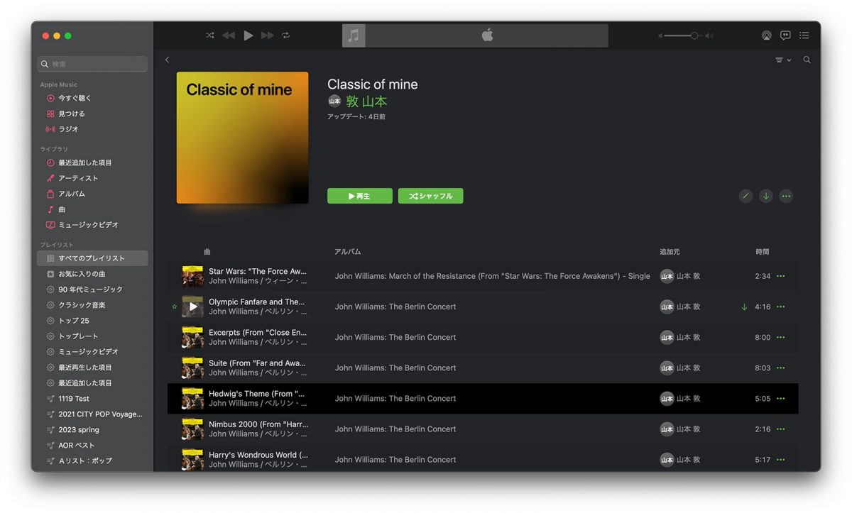 ↑iPhoneからApple Music Classicalに揃う作品、アルバムをお気に入りに登録するとApple Musicに反映。プレイリストなどはMacの「ミュージック」アプリから見ることができるようになります
