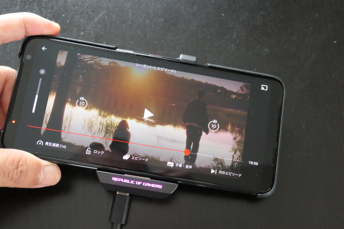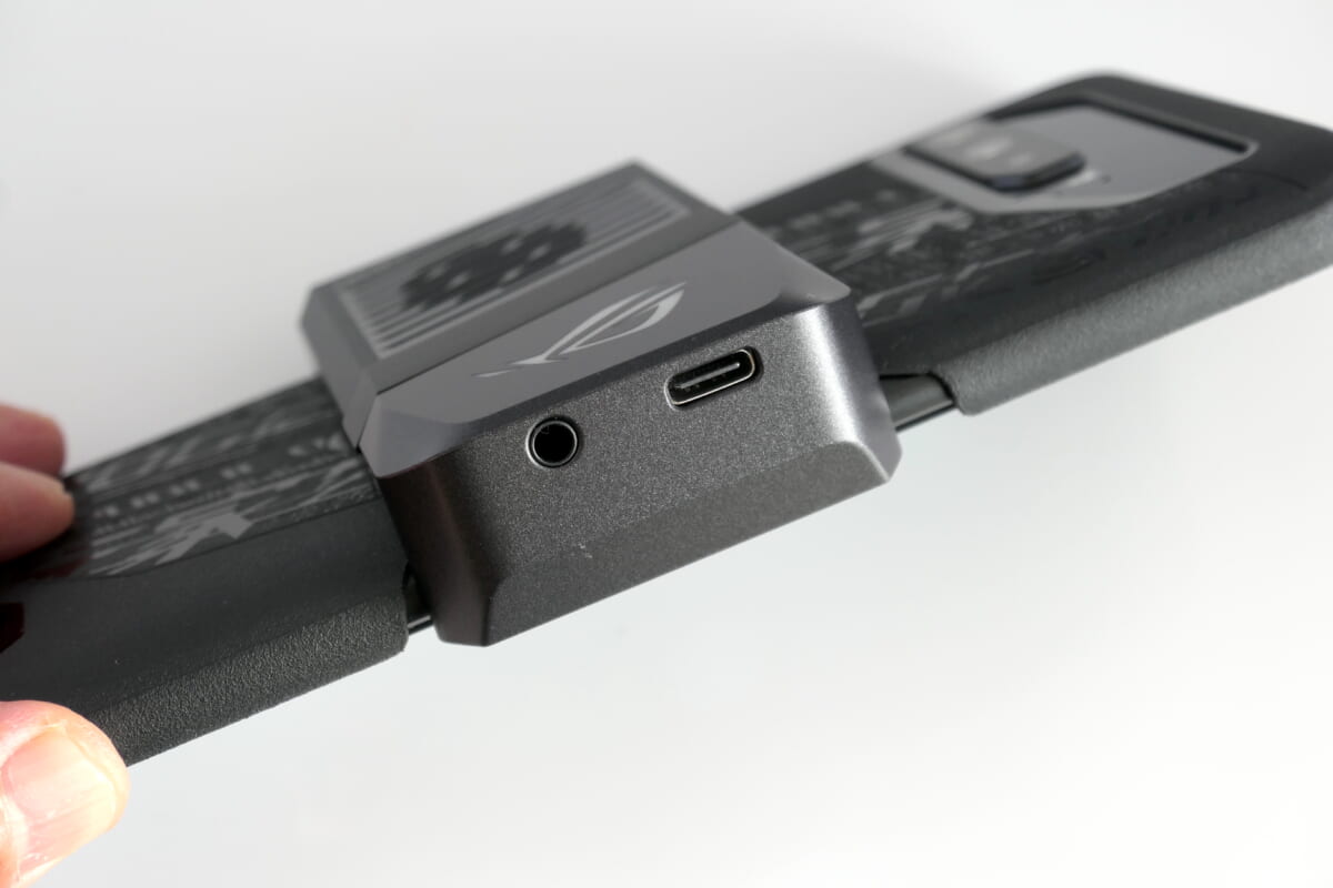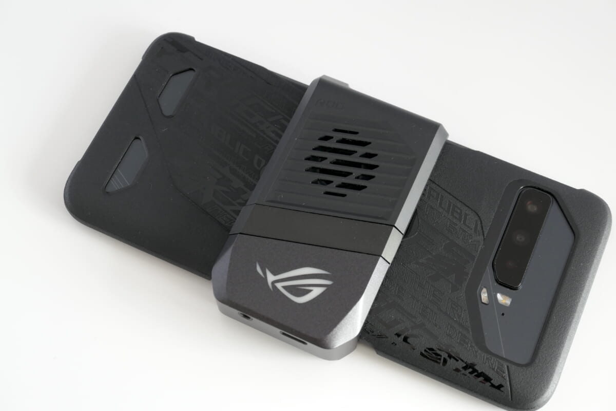 本体中央部にCPUを配置した設計により高い熱効率を実現しています。さらに、アクセサリとして外付けクーラー「Aero Active Cooler 5」を用意し、ゲーム中のオーバーヒートを防いで処理能力の低下を抑えます。なお、ROG Phone 5 UltimateにはAero Active Cooler 5が標準同梱されます。