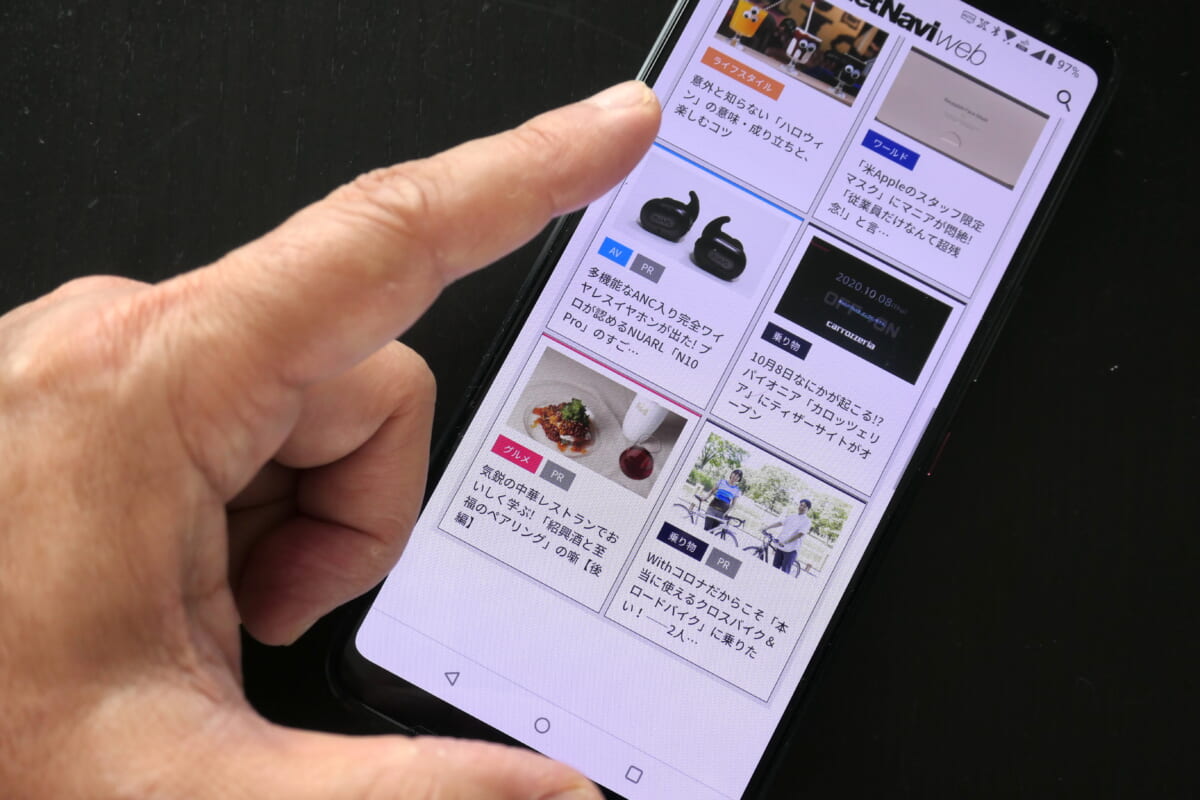 この心地よさを機能面から説明すると、まずディスプレイが120Hz駆動に対応していて、2400×1080ドットと5.9インチとしては十分な解像度があります。そして、チップセットは最新のSnapdragon 8 Gen 2を搭載し、文句のない処理能力があります。120Hzで描画しても、コマ落ちなどは一切なく、なめらかに表示できます。