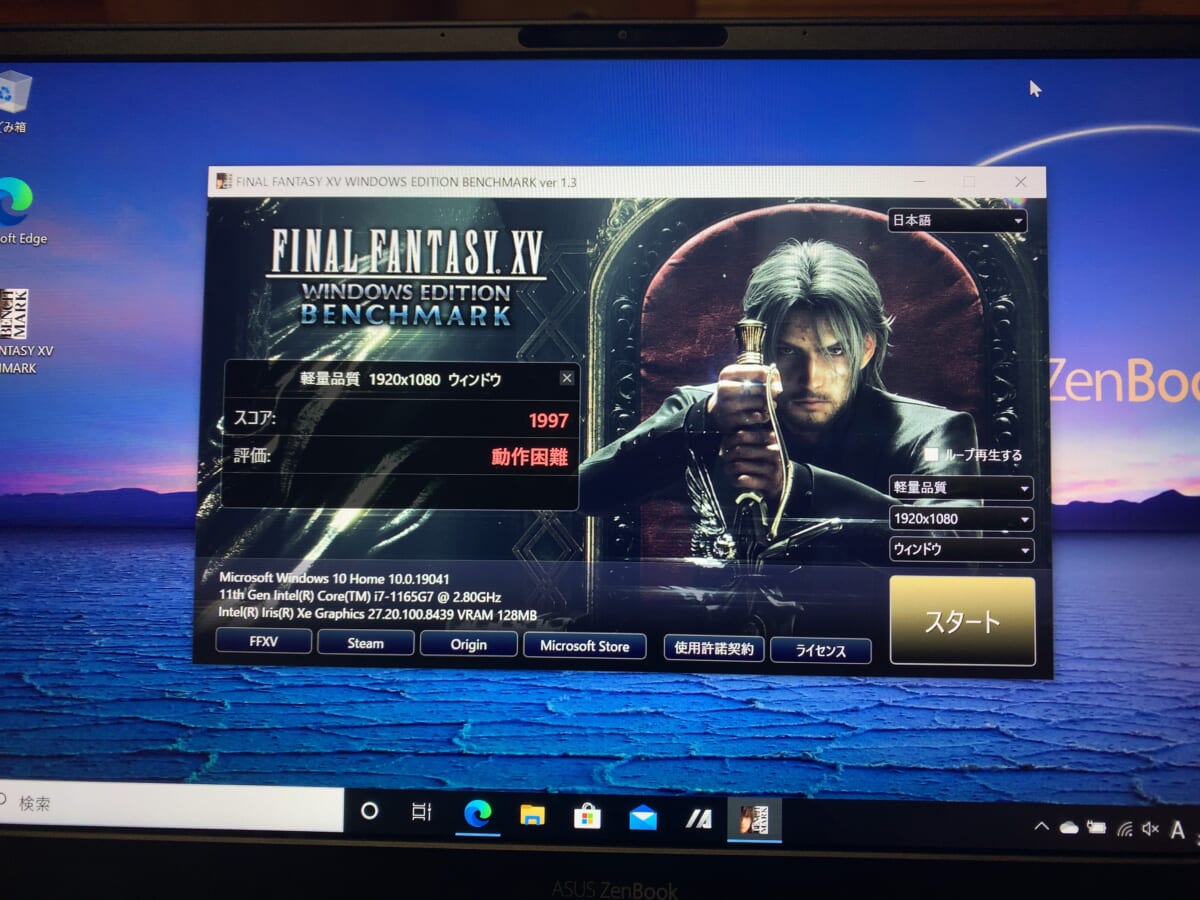 War Thunderプレイ時のグラフィックはmediumに設定しましたが、本作の動作のうえでは問題は感じませんでした。また、FF15のベンチマークでは、フルHDの標準品質で「普通」との判定。ベンチマーク中のグラフィックを確認したところ、カクカクして見えるところはなかったので、おおかたのゲームはある程度快適に遊べそうです。