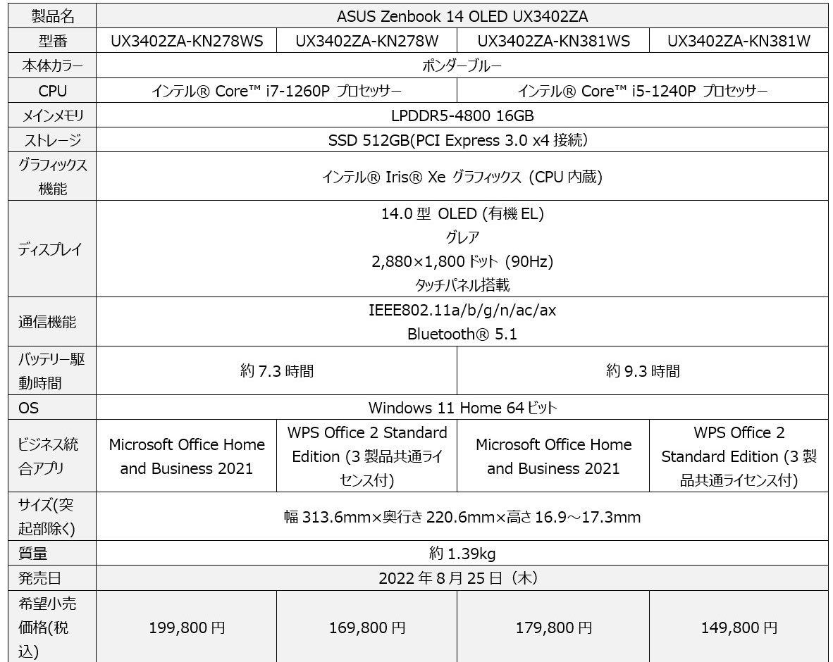 | ストレージ | 256GB / 512GB |