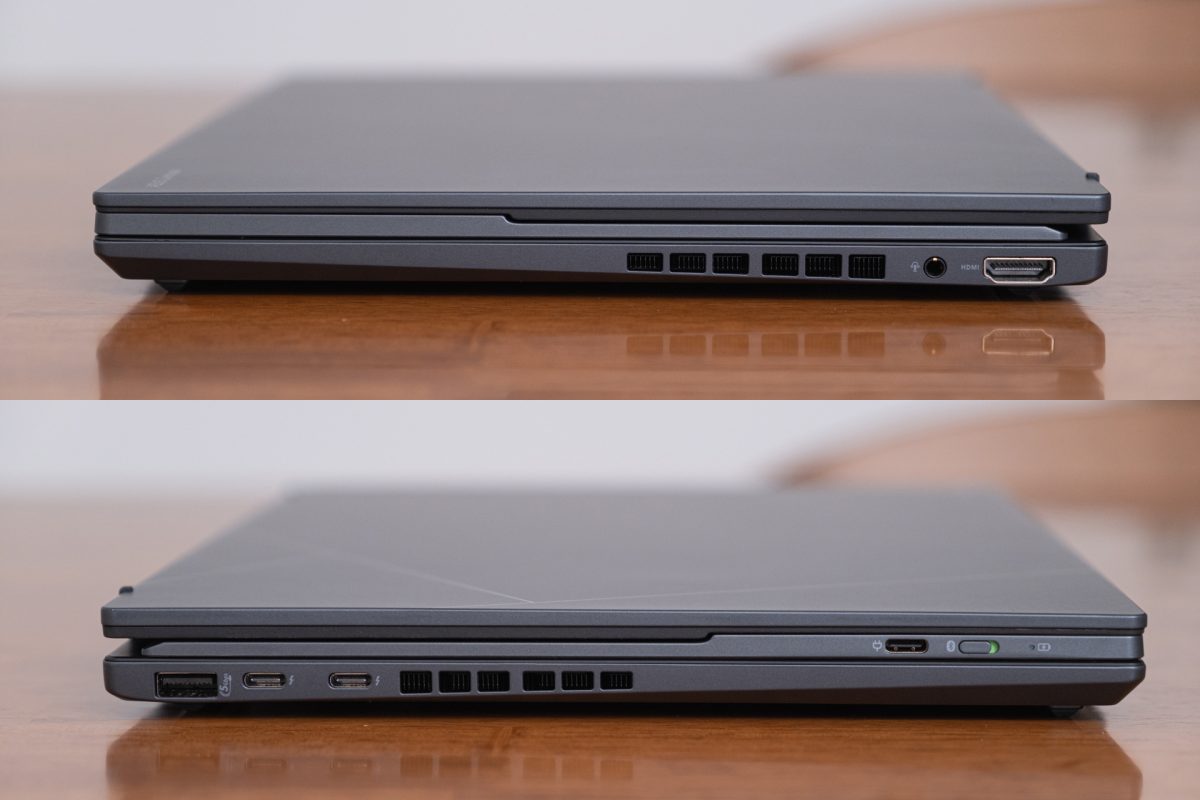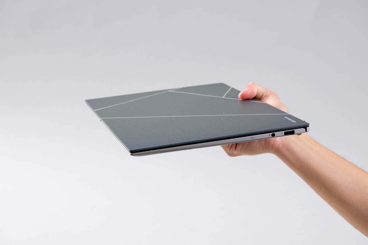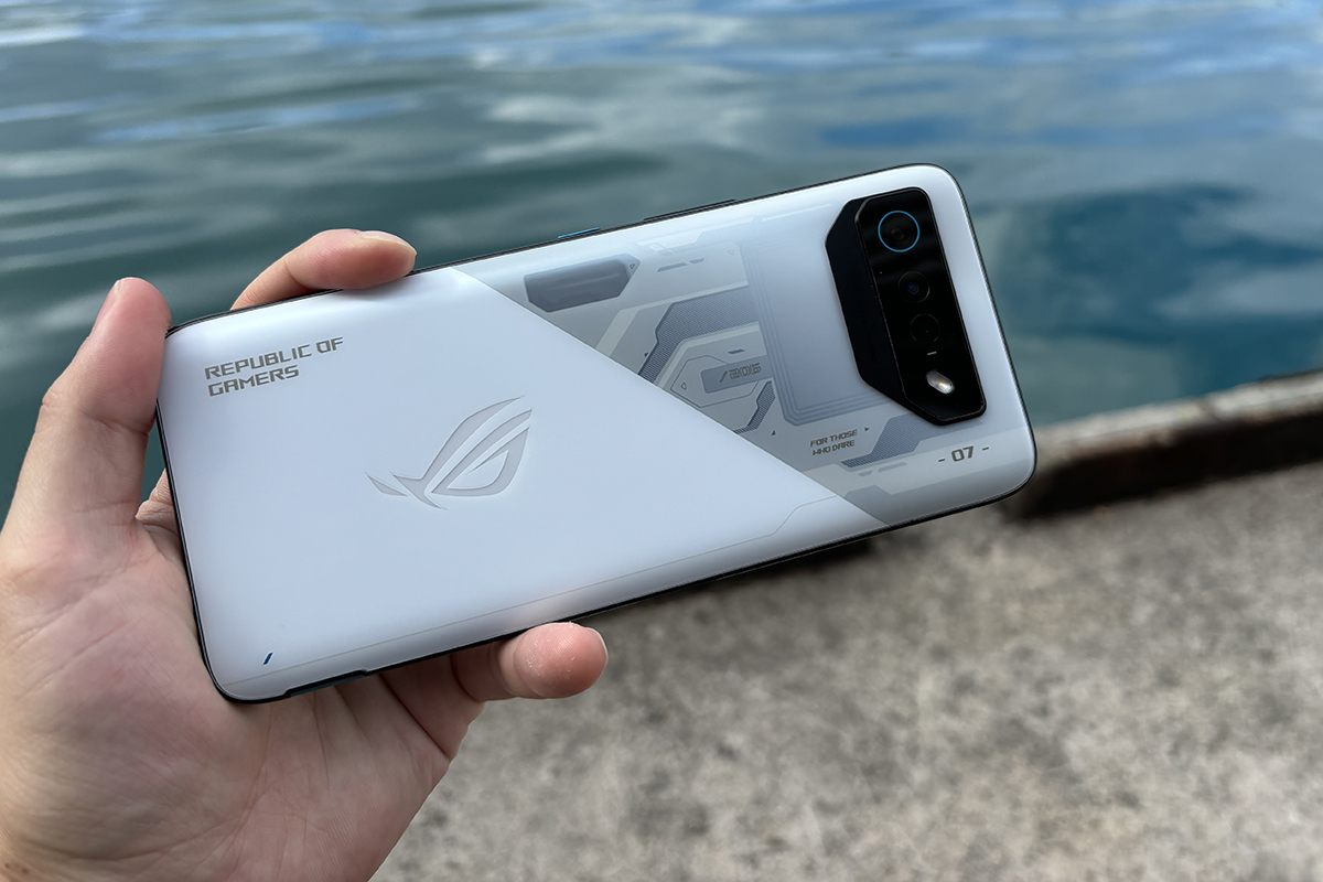 全体的なデザインも前モデルと大きな違いは少なく、四角く少し出っ張ったカメラ周りや、下部に集まったスロット類なども変わりありません。大きな違いとして挙げられるのは、背面デザイン。前世代機にはASUSのシンボルマークが大きく配置されていましたが、今回はシンプルなデザインに変更されています。