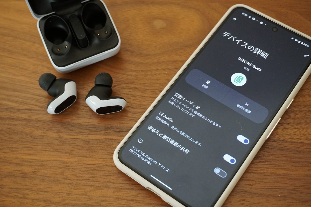 Amazon Music UnlimitedのUltra HD音質のコンテンツで試してみたところ、INZONE Budsはデジタル無線接続と、Androidの場合はBluetooth接続でも最大48kHz/24bitの高音質再生ができました。音楽再生を楽しむためのワイヤレスイヤホンとしても贅沢な仕様です。