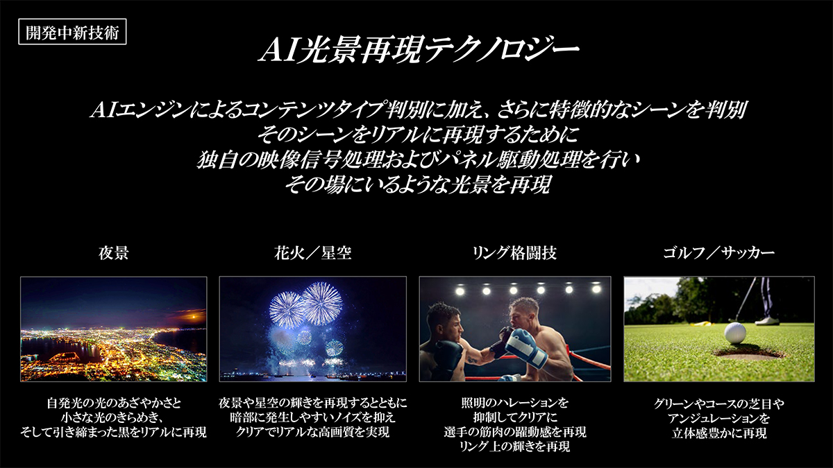 Z870Nシリーズは、55型、65型、75型の3サイズを用意し、5月31日より発売。輝度が従来比約1.3倍にアップした新開発4K Mini LED液晶パネルモジュールを搭載しています。LEDの点灯エリアを緻密に制御し、発生しがちなハロを抑制するとともに、明部と暗部の階調性豊かな高コントラスト映像を実現します。
