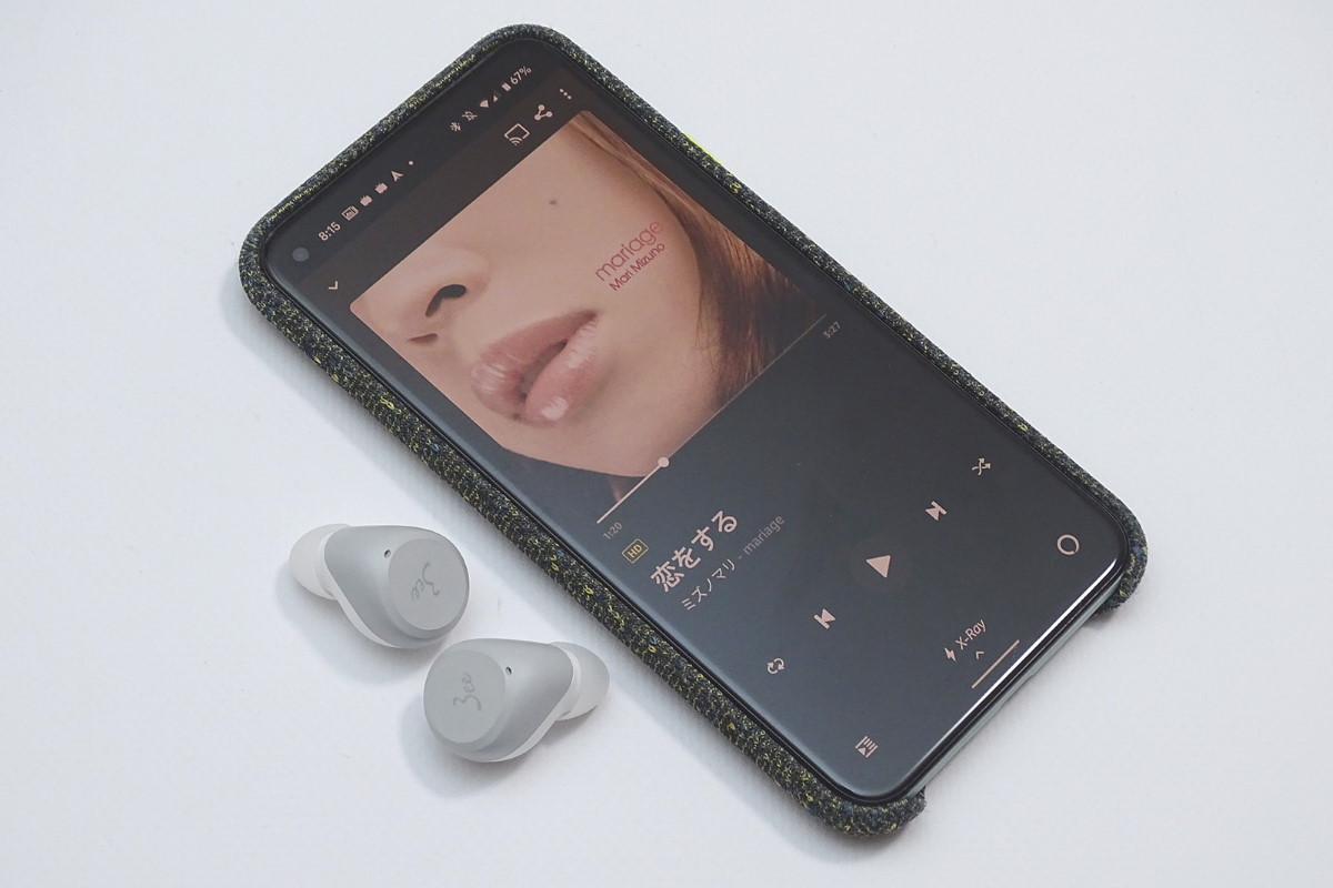aptX接続に対応するAndroidスマートフォン「Google Pixel 5」でAmazon Music HDの音楽配信サービスの楽曲を聴いてみました。ノラ・ジョーンズのライブアルバム「’Til We Meet Again」の楽曲「Don’t Know Why」では活き活きとしたボーカル、艶やかなピアノの魅力をとてもクリアに浮かび上がらせる解像度の高さを感じさせます。aptX対応を活かして繊細な音の輪郭線を描き、低音再生の反応も鋭く、歯切れのよいリズムがとても心地よく感じられます。5000円前後の同価格帯のワイヤレスイヤホンのなかでは別格といえる音楽再生の高いパフォーマンスを備えています。