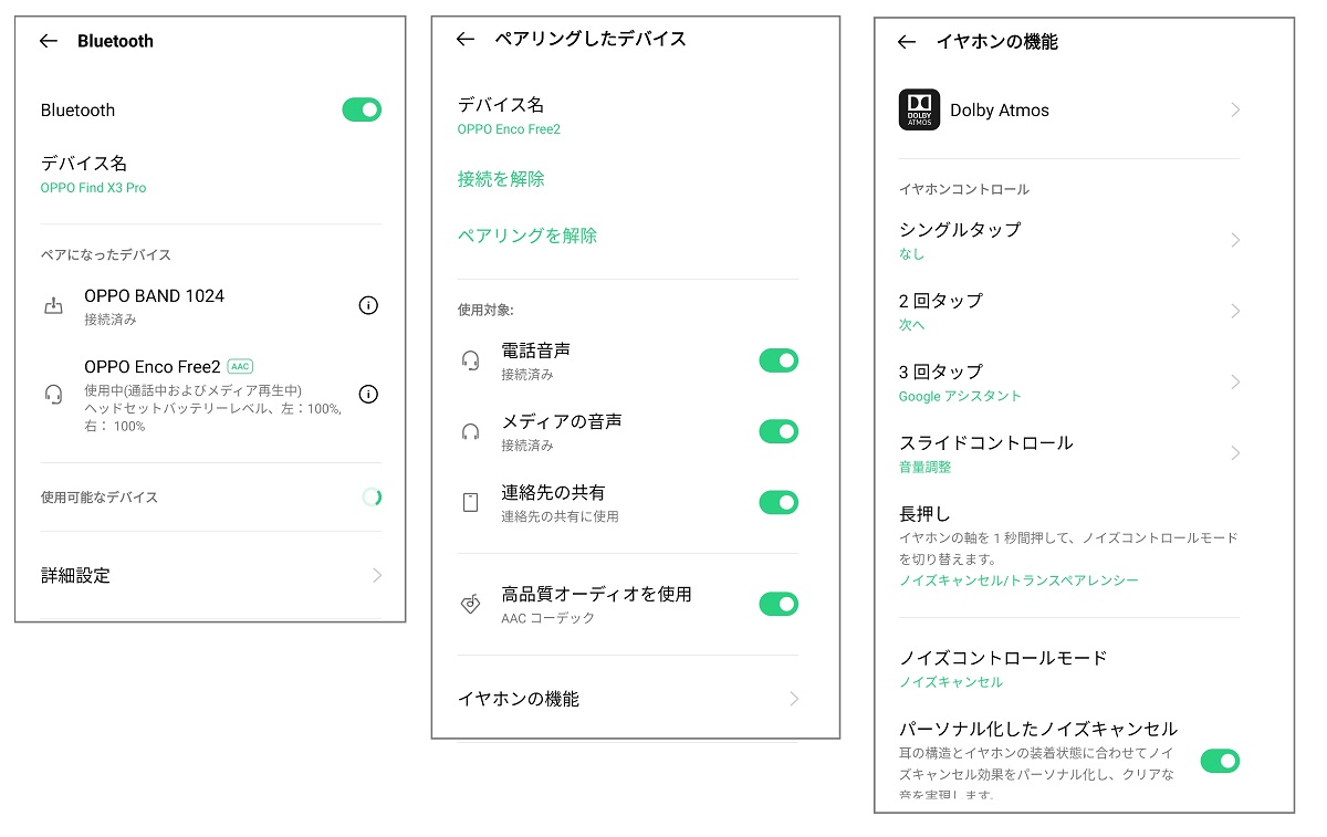 ケース内側のボタンを長押しするとケースのLEDランプが点滅して、Bluetoothペアリングモードに切り替わったことを知らせてくれます。Androidスマホの場合はこの状態から、あらかじめスマホにインストールした「Beats」アプリからペアリング設定を行うか、またはAndroid 6.0以上のデバイスであればGoogle Fast Pairによるワンタッチペアリングが使えます。Android向けのBeatsアプリからはイヤホンのバッテリー残量を確認したり、本体リモコンボタンの設定変更などができます。Studio BudsはAirPodsシリーズよりさらにAndroidスマホのユーザーに優しい使い勝手に踏み込んでいるところが魅力的です。